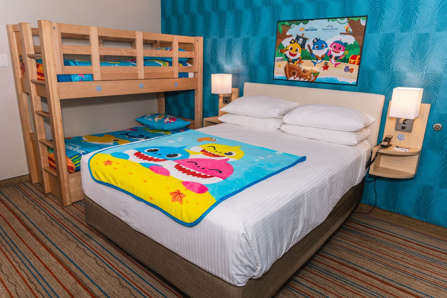 - Baby Shark-themed stays are available in our Queen Junior Bunk rooms, ideal for families of up to 4 guests.
