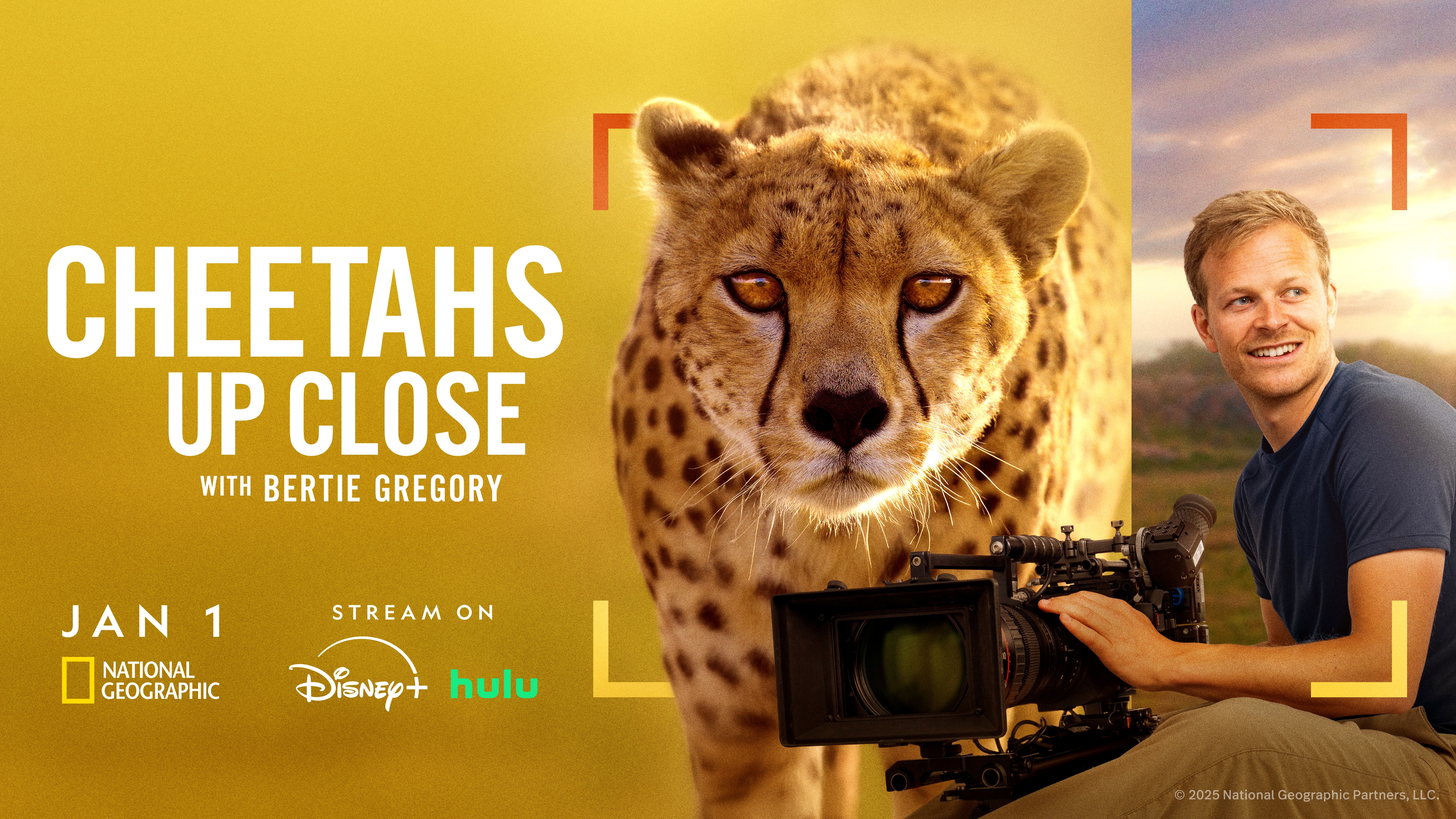 - Cheetahs Up Close with Bertie Gregory premieres Thursday, January 1st at 9/8c on National Geographic and streams the next day on Disney+ and Hulu.