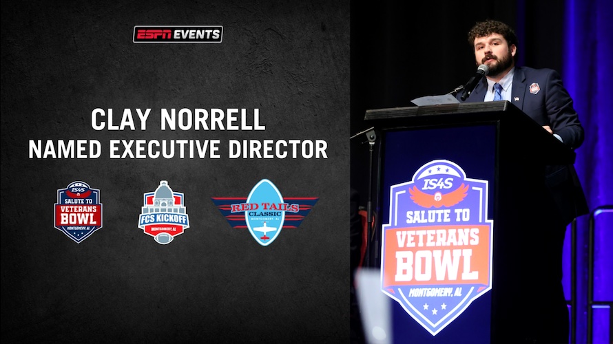 Clay Norrell has been appointed as the Executive Director of the IS4S Salute to Veterans Bowl, FCS Kickoff, and Red Tails Classic.