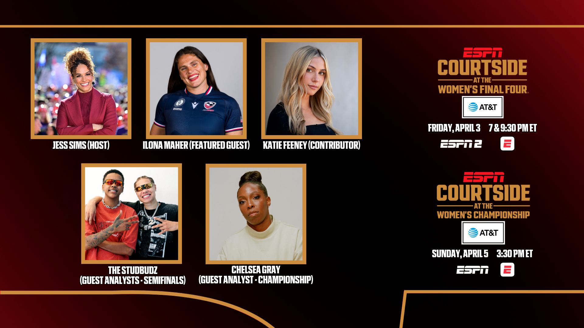 - Ilona Maher: “I’m incredibly excited to be joining ESPN’s Courtside in its first year. As a champion of women’s sports, I cannot wait to be part of ESPN’s presentation of women’s basketball on the biggest stage. We are going to see some fantastic games and we’re ready to have some fun right next to the action.”