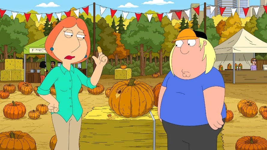 Despite Brian listing off a number of Halloween-appropriate songs including Michael Jackson’s “Thriller" (“That one’s scary, but for the wrong reason," muses Stewie), none of these are deemed acceptable by the talking baby. So this leads us to the first of two major plotlines in this episode– Stewie and Brian trying to pen a new song for the spooky holiday. Back at home, they get to work while Chris Griffin (Seth Green) tries on some Halloween costumes, including one from Grimsburg, which nobody recognizes despite that Jon Hamm-starring animated series still running on FOX.