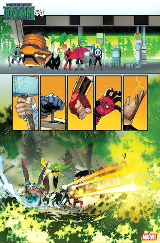 - Today fans can get a sneak peek at the explosive battle to come with an advance preview of One World Under Doom #3, which is set to go on sale next month.