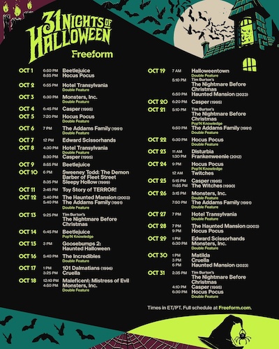- Freeform has released its schedule for the 2025 iteration of its frighteningly fun 31 Nights of Halloween programming event.
