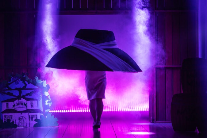 Taratula’s Meredith is a show in herself. Sporting a series of literal “hat on a hat" gags. With ever-shrinking nested hats stacked on her head, she commands the stage with high-camp bravado. She even breaks the fourth wall in a nod to Six, turning to the audience to debate whether Meredith, the scheming parents, or the changeling twins are the true villains.