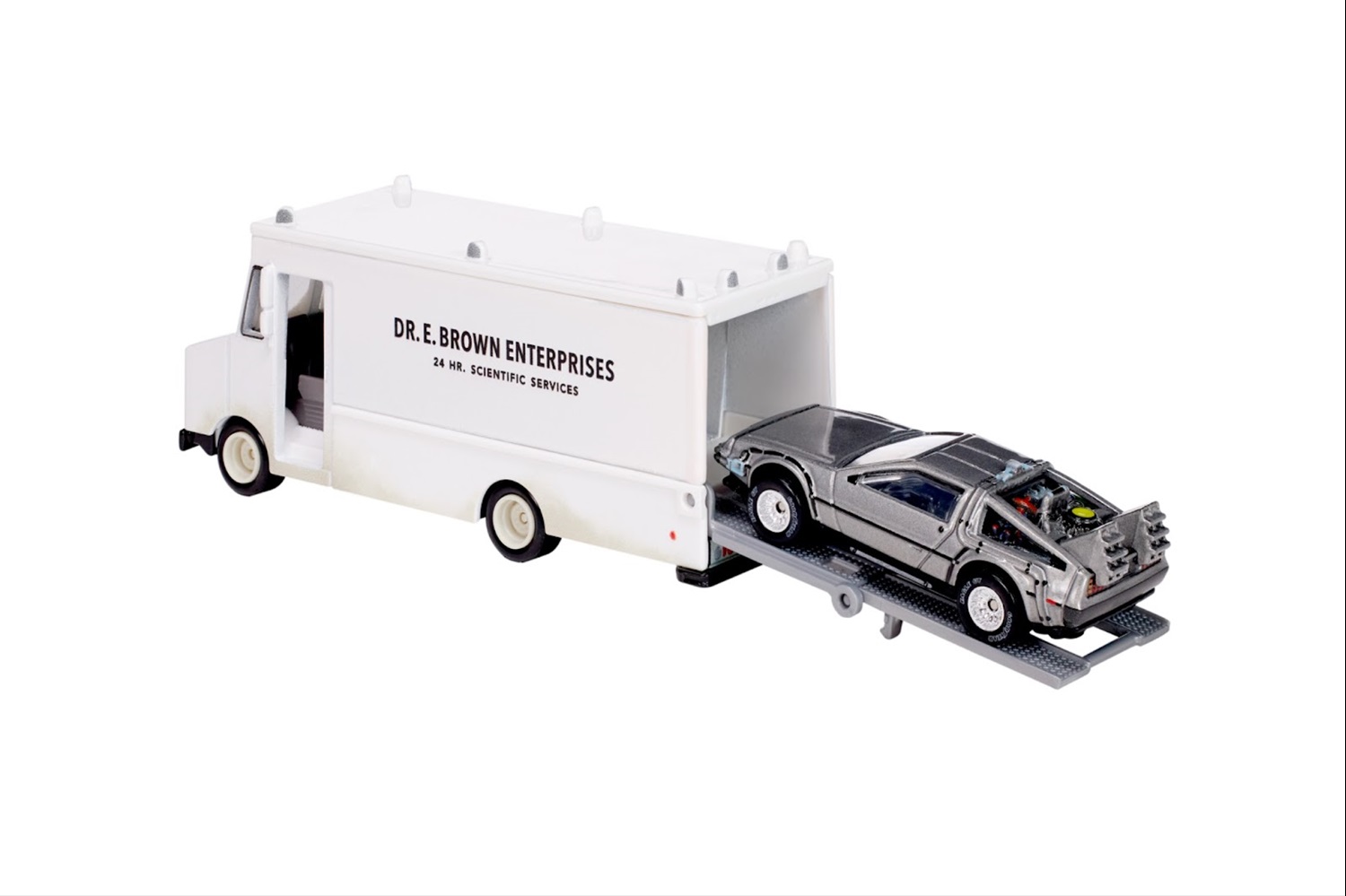 - This limited-edition set includes finely detailed die-cast vehicles of both the famous Back to the Future time traveling DeLorean and also Doc Brown’s truck, which the DeLorean was first housed within in the scene where the car made its on screen debut.