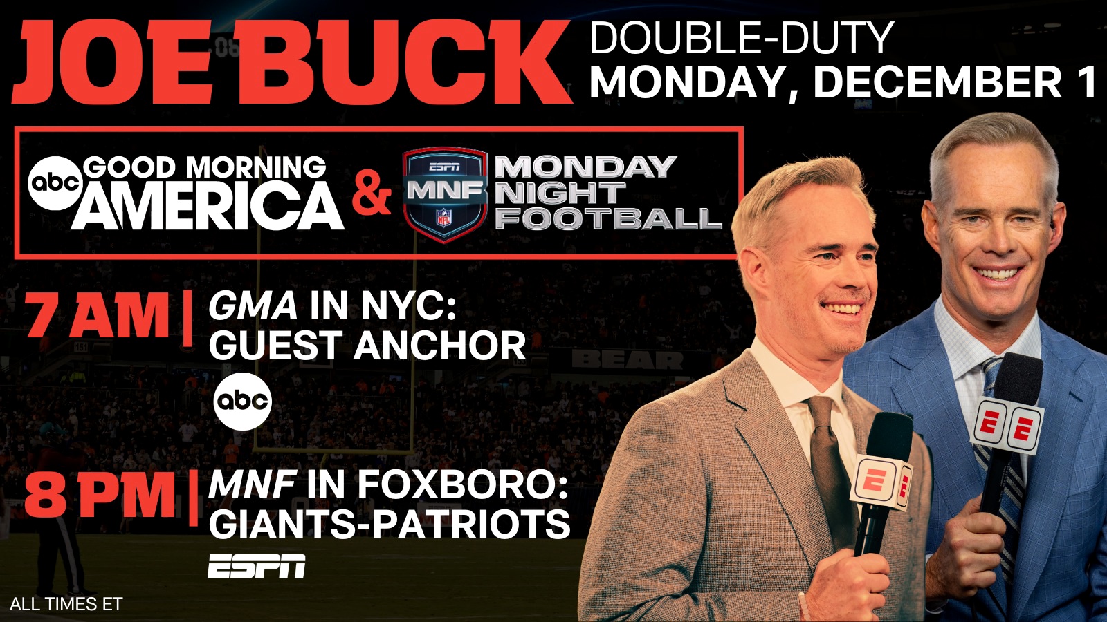 ESPN sports personality Joe Buck is set for a rather busy day next week, which will see him guest anchor Good Morning America before calling the Monday Night Football matchup.