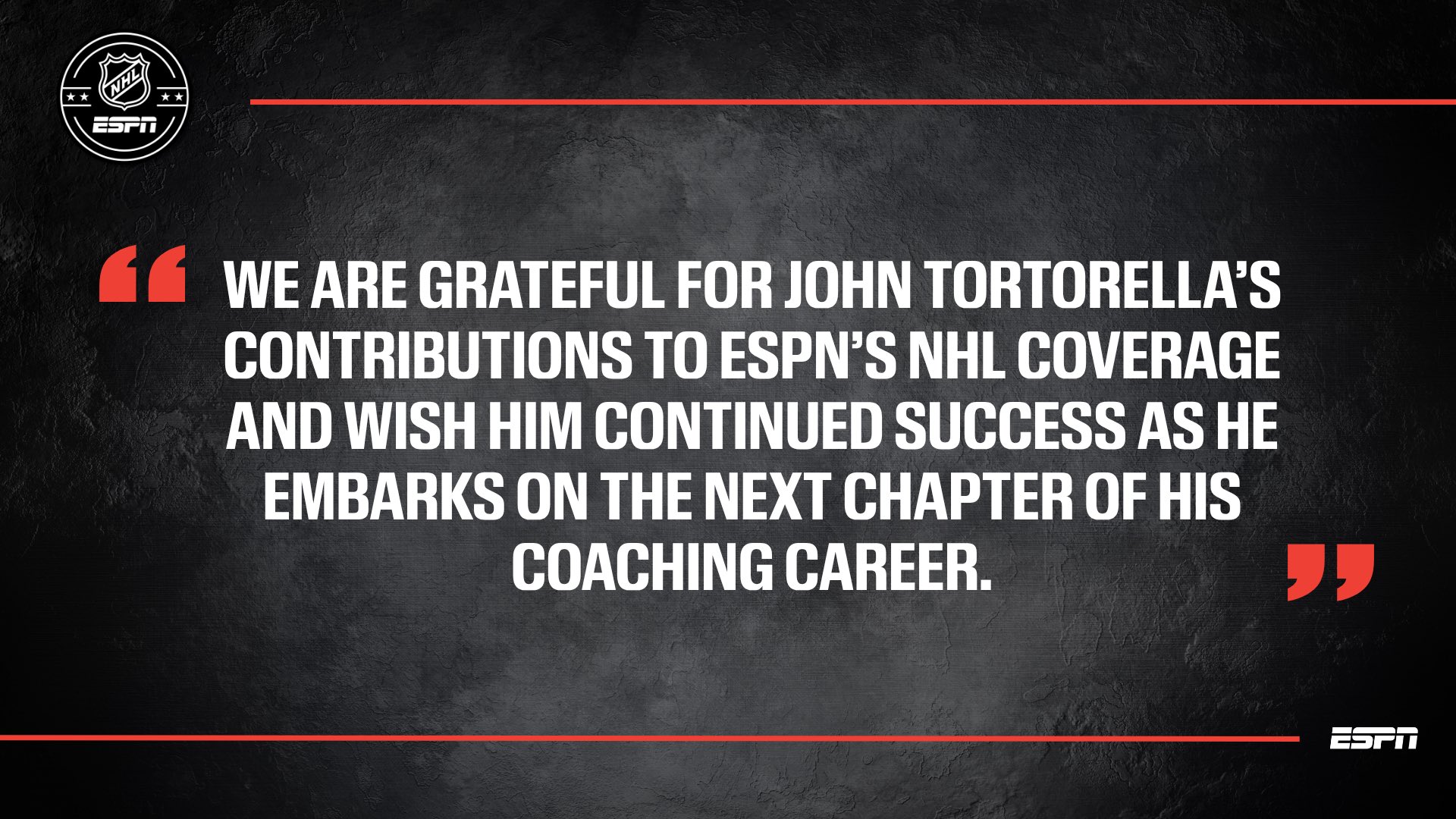 - "We are grateful for John Tortorella's contributions to ESPN's NHL coverage and wish him continued success as he embarks on the next chapter of his coaching career."
