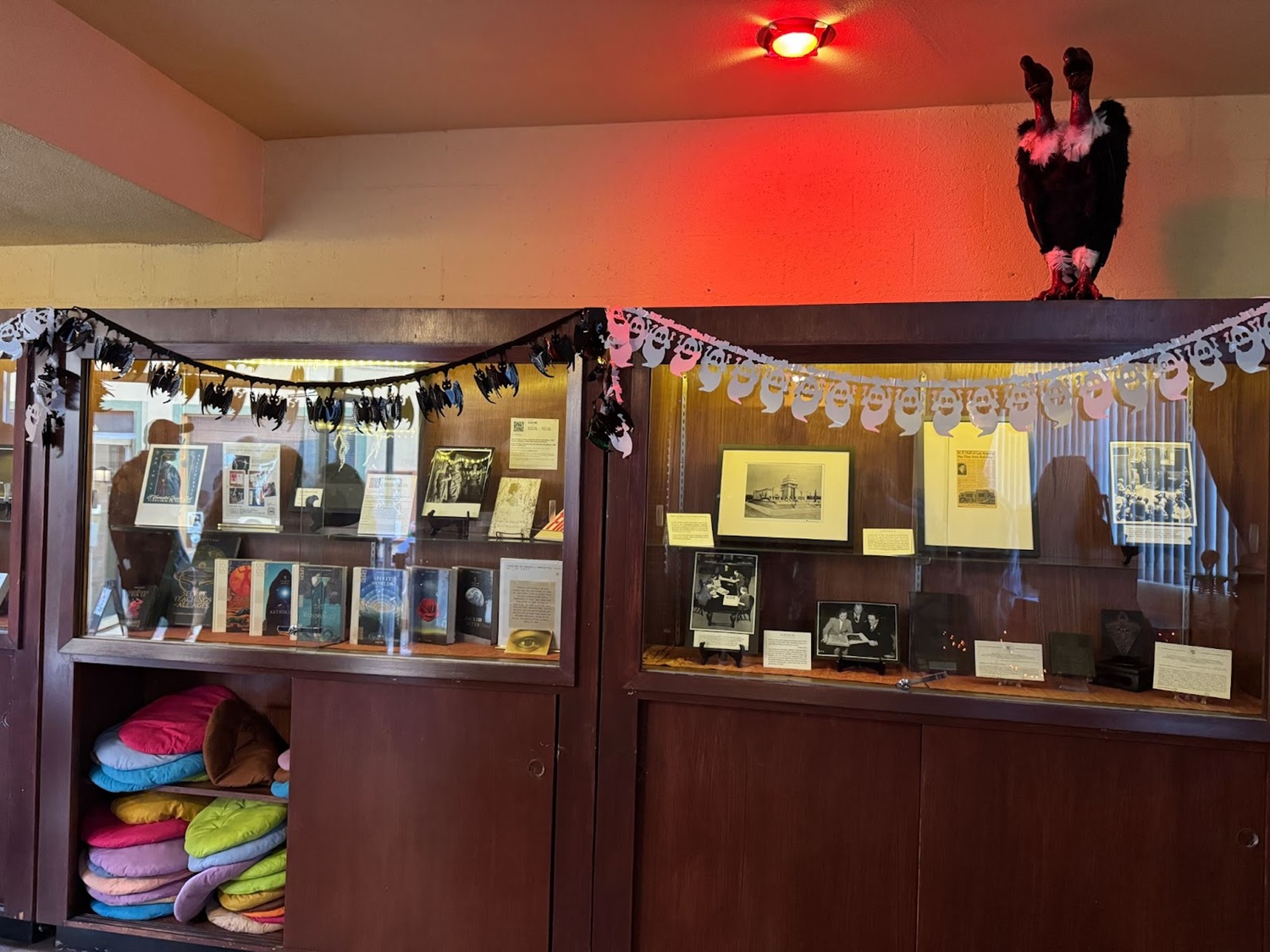 Inside the venue’s auditorium, a slide was projected on the screen with the key art for the Lucas Museum’s Halloween event while attendees filled the hall and the performers got set up. While we waited for the show to begin, we were individually greeted by accomplished magic lanternist Terry Borton, who showed off a favorite flip-book and welcomed us to the performance.