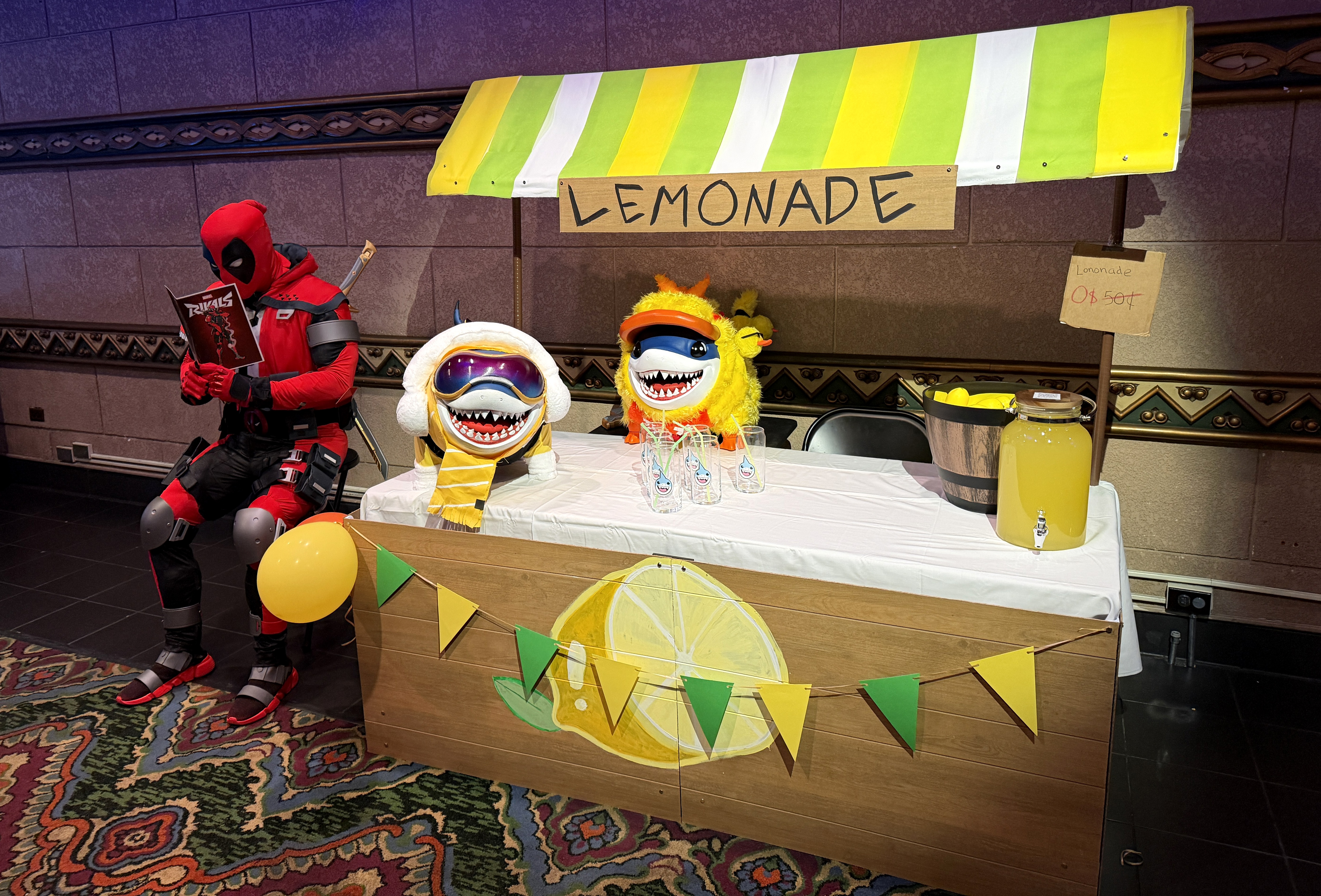 In the lobby, the game's version of Deadpool was there to greet fans, sporting his Marvel Rivals costume. And next to him was Jeff's Lemonade Stand, representing the Jeff the Land Shark emote now available in the game's Times Square setting - with Jeff himself an example of an obscure character from the comics who's now been elevated in status in a huge way because they are a part of Marvel Rivals.