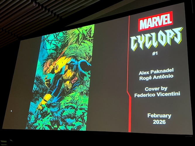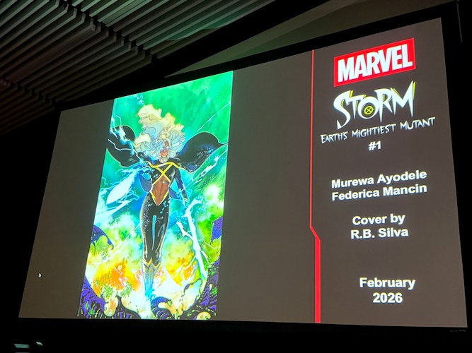 The goddess of weather returns under writer Murewa Ayodele and artist Federica Mancin, with a cover by R.B. Silva that drew cheers from the crowd. Brevoort described the book as “the same thing only bigger" — expanding on Ayodele’s acclaimed earlier work with even more spectacle, heart, and attitude. The cover art showed Storm wielding crackling lightning swords, symbolizing her rise as “the preeminent mutant superstar of the Marvel Universe."
