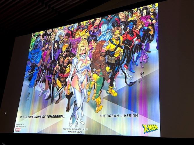 The panel’s final moments offered a handful of subtle teases about what’s next for mutantkind. Emma Frost’s prominent placement in the Shadows of Tomorrow key art isn’t random — fans were directed to a cryptic exchange in Exceptional X-Men #13 for clues about her next move. For those invested in X-Men relationships, we were reassured that Rogue and Gambit’s bond remains “a pairing that’s going to remain a pairing for the foreseeable future," though the team won’t make it easy on them. Fans of Synch, Richter, and Shatterstar can also look forward to more: Synch will reappear “shortly… in a way" yet to be revealed, while a completed script already exists for a Richter–Shatterstar story awaiting the right release window. Elsewhere, Ms. Marvel is confirmed to factor into one of the newly announced titles, continuing her growing ties to mutantkind. Together, these exchanges reinforced that the Shadows of Tomorrow era won’t just redefine the future of the X-Men — it’s planting seeds for where the franchise might evolve next.
