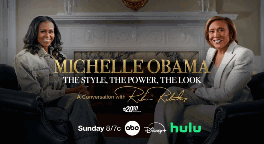 - Michelle Obama: The Style, The Power, The Look – A Conversation with Robin Roberts – Special Edition of 20/20 airs Sunday, November 2nd (8:01-9:00 p.m. EST) on ABC and streams next day on Disney+ and Hulu.