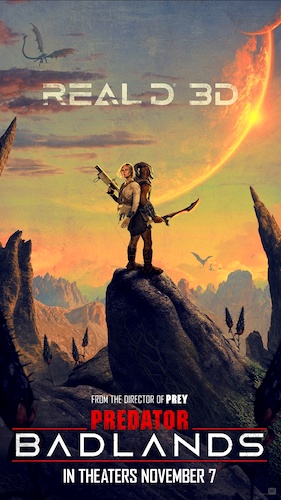 - Produced by John Davis, Dan Trachtenberg, Marc Toberoff, Ben Rosenblatt and Brent O’Connor, Predator: Badlands opens exclusively in movie theaters on November 7.
