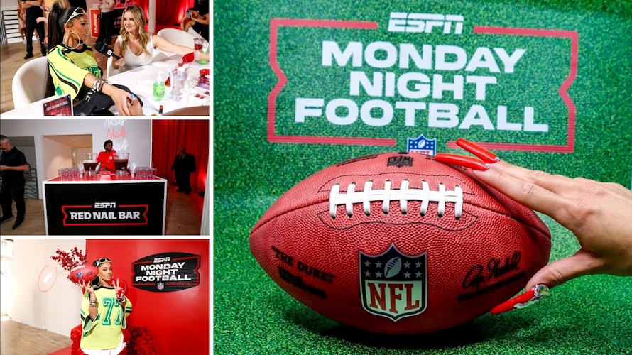 The popular rapper and MNF fans got all glammed up at this special ESPN Red Nail Bar pop-up.