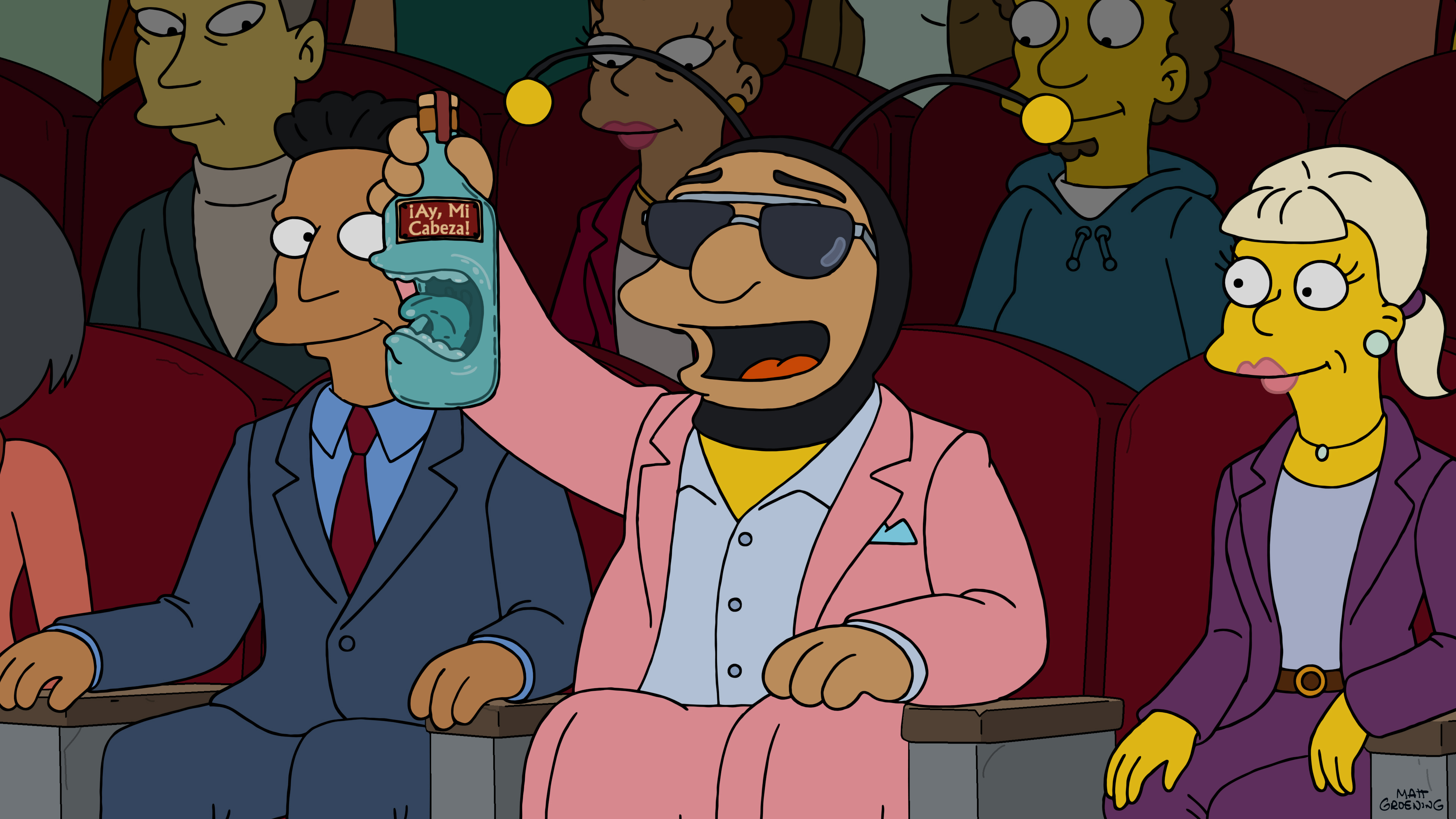 But Bumblebee Man's ratings only go up as he continues to use Homer for his ability to take loads of physical punishment (shades of the seventh-season episode "Homerpalooza" here), while at home of course Marge is concerned for her husband's safety. After a montage of Homer performing various stunt for Bumblebee Man's show on his unpredictable Mexican-inspired Channel Ocho sitcom, the pair run into acclaimed filmmaker Alejandro González Iñárritu (also voicing himself), with Homer praising The Revenant for its "hilarious" bear attack on Leonardo DiCaprio. It seems that Iñárritu wants to cast Bumblebee Man in a new film, and the performer is only too happy to accept the offer, with the only problem being he has to somehow continue to conceal the fact that he's using a double.