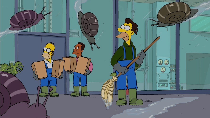 Now a mega-rich Chalmers is living a new life, running the company and giving inspirational speeches. He’s even invited back to Springfield Elementary to talk to the students about his success story, where he’s shocked to discover that the kids are all using Escarbro as well, obsessed with the idea of looking even younger than they actually are. So this story wraps up with Gary using his newfound wealth to purchase the school– reclaiming the title of superintendent– and ban his own skincare products, though he maintains a stake in Escarbro and is confident that the mutant snails will continue producing slime for years to come. But there’s only one problem: he left Homer and his bumbling pals in charge of the snails’ care, and they reward their slimy wards with salty potato chips and beer. I think we all know what that does to snails.