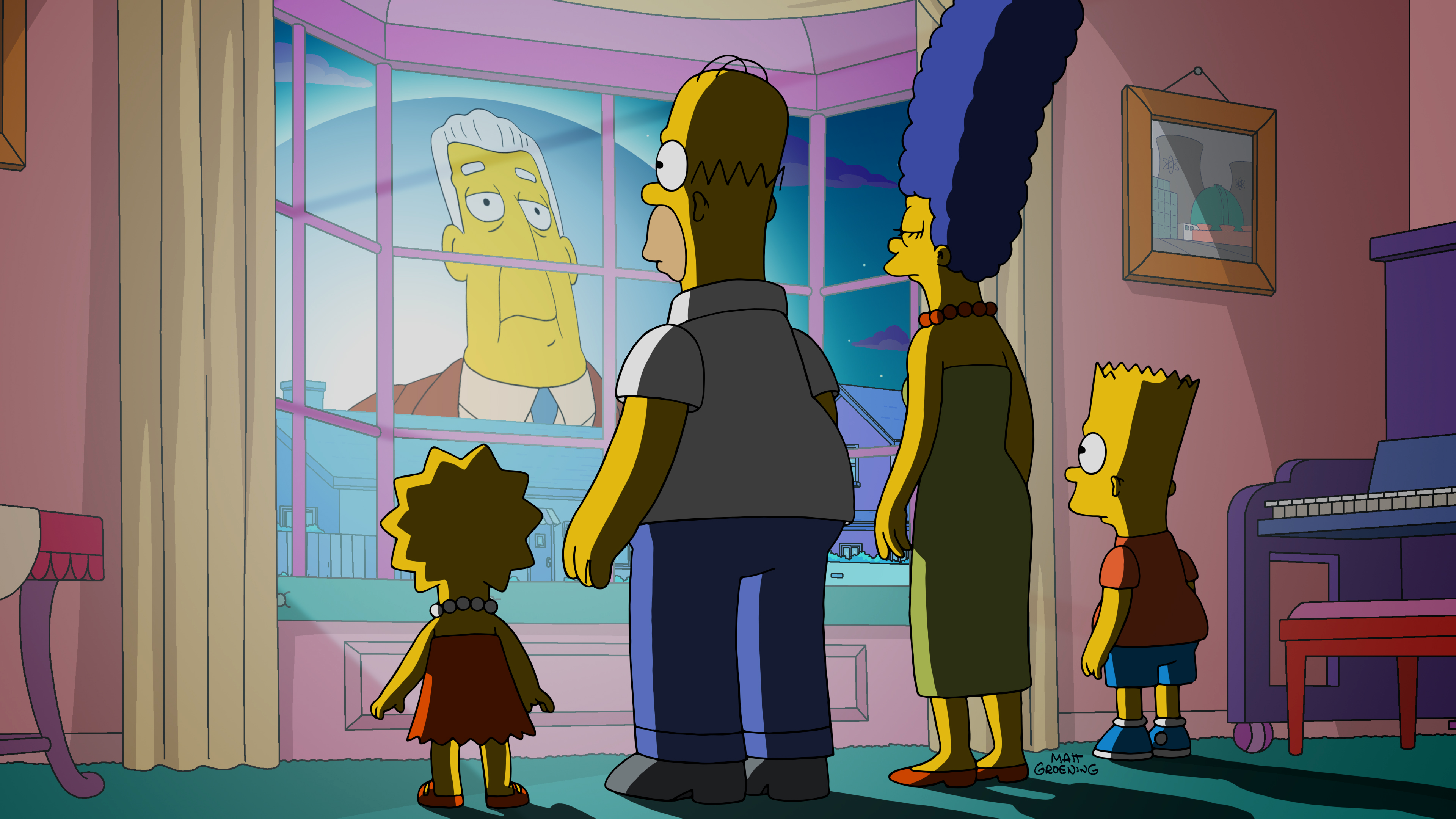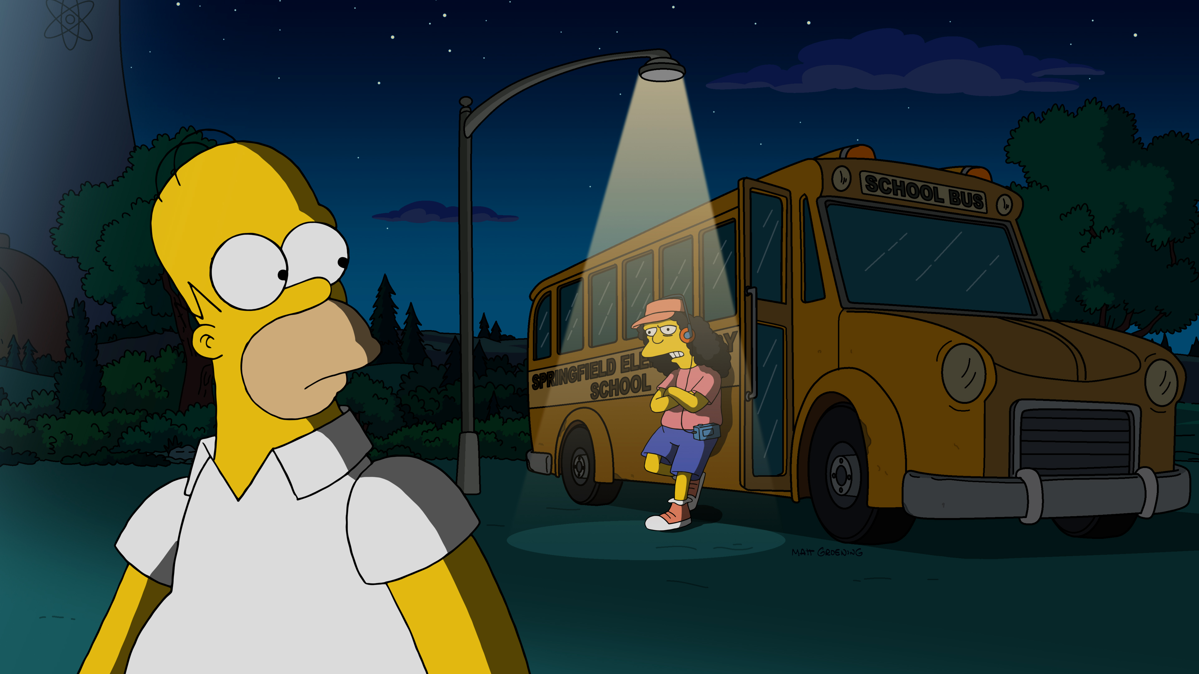 So the Circulus is rolled into place next to the power plant and turned on, bathing Springfield in an eerie glow. Soon residents including the Simpson family are forced to sleep in welding masks to block out the light, but before that newscaster Kent Brockman (Shearer again) announces that the first concert to be held at the Circulus will be K-pop group Kneesock Dolls, who Lisa (Yeardley Smith) says is her favorite musical group from her "favorite Korea." Naturally Lisa begins to beg her father Homer (Dan Castellaneta) to go to the concert, and though he initially resists, he eventually breaks down and agrees to buy her tickets. The only problem is that when they sit down to make the purchase, tickets to the show sell out in less than a second.