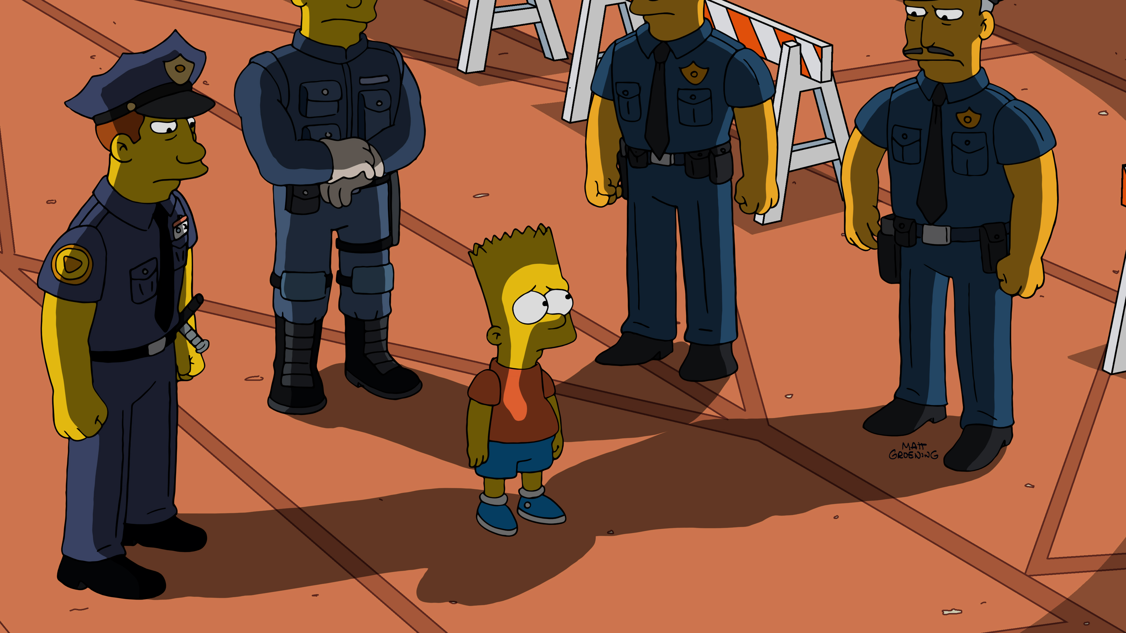 So the remainder of the episode roughly follows the dramatic beats of Trap, with Bart even managing to steal Wiggum's walkie-talkie and use it to evade the FBI profiler, who has determined that a student at Springfield Elementary must be the perpetrator due to their only using the money to publicly mock Principal Seymour Skinner. But after Bart decides to flush his phone in order to escape without his location being triangulated, the authorities line up all the kids at the exit and use their faces, one at a time, to attempt to unlock the recovered phone. When it comes down to Bart being the lone remaining potential suspect, the profiler thinks she's got her man, but Bart's face doesn't unlock the phone either, and he walks away scott-free.