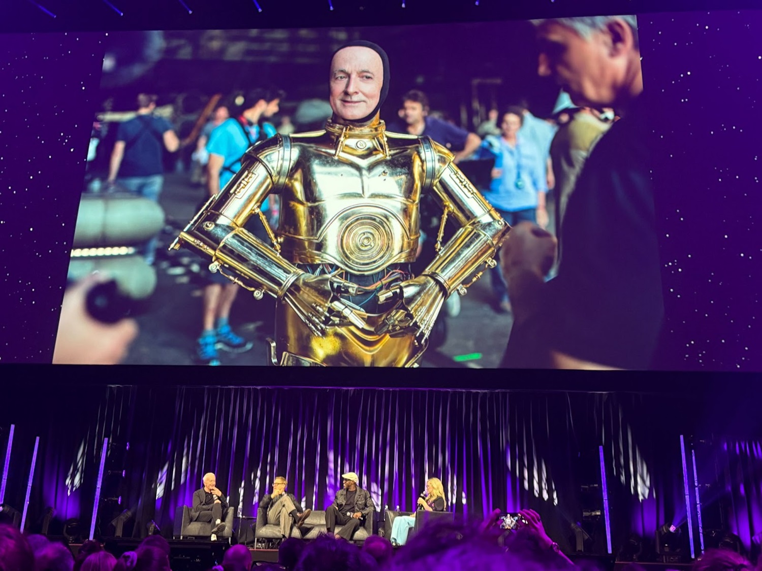 Eckstein steered the conversation to the artistry behind these characters. Daniels described how C-3PO’s nervous voice was born on the first day of filming in the desert, surrounded by heat, sand, and uncertainty. “He arrived with the grace of the Force," Daniels said, revealing that even George Lucas hadn’t initially planned to use his voice. He shared that the same was even true of Frank Oz’s voice for Yoda, and Ahmed Best didn’t know his voice would be used for Jar Jar Binks until the first table read for The Phantom Menace.