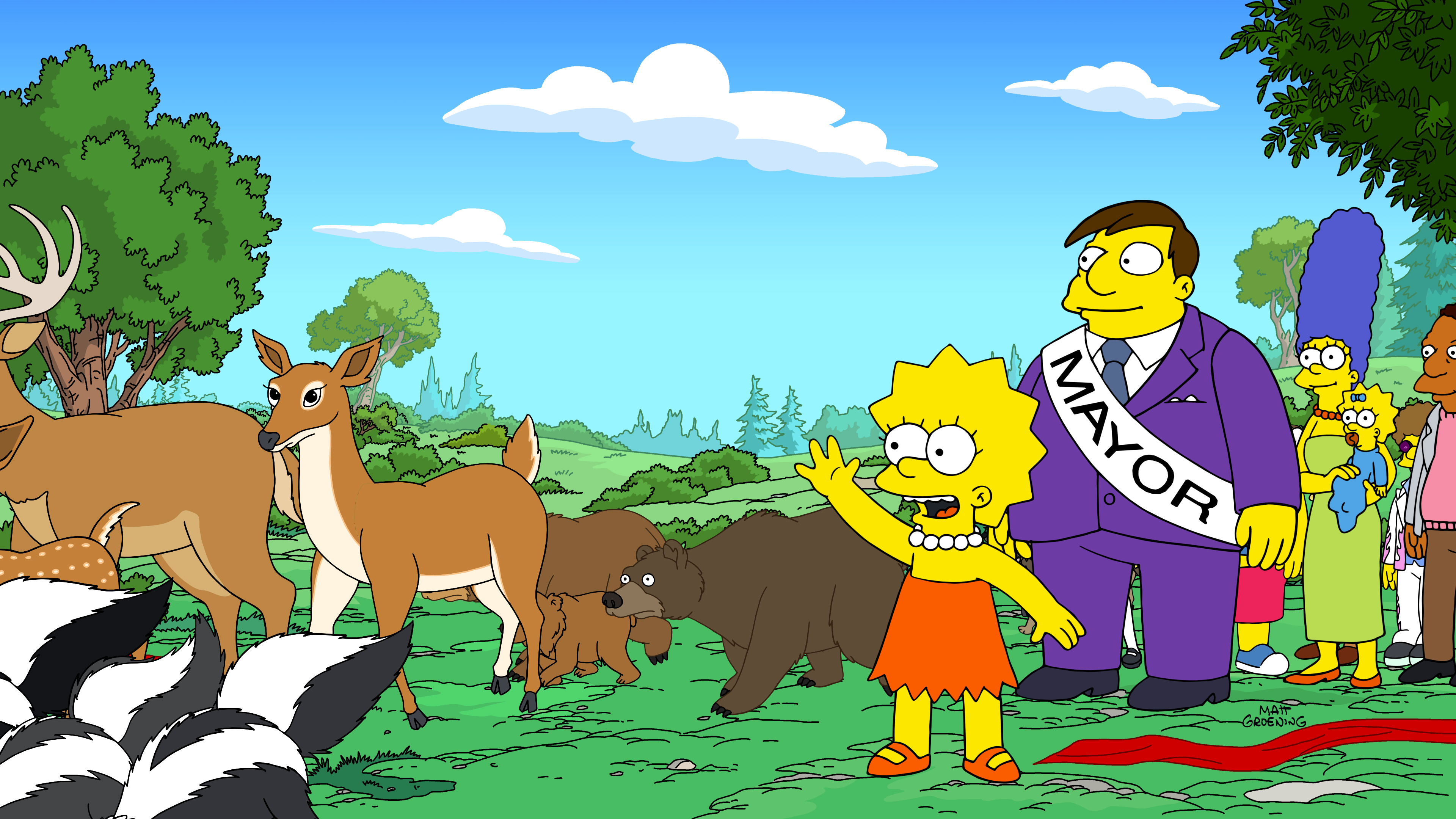 "Homer? A Cracker Bro?" begins at Mayor Quimby's (voiced, as always, by Dan Castellaneta) dedication of a new wildlife crossing over one of Springfield's busy freeways (we have these in Los Angeles, which I suspect is where The Simpsons' writers got the idea). Apparently this was Lisa Simpson's (Yeardley Smith) idea, and she proudly watches the animals cross over the street, where they promptly invade a local pharmaceutical factory and eat a large portion of its output. In the very funny sequence that follows, this makes all the critters go crazy in various ways, and Lisa sadly is forced to take the blame.