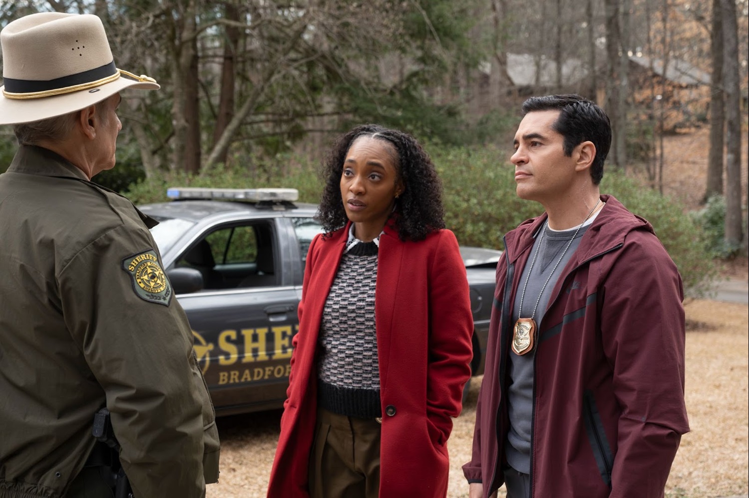 Sheriff Caleb Roussard (Yul Vazquez) is about as inhospitable as can be when Will and Faith arrive outside the home of the deceased deputy sheriff. It’s clear that this is a tight-knit community, as evidenced by the neighbor, Diana (Malena Cunningham Anderson), who brings Roussard some banana bread and tells him about the three gunshots she heard around 2:00 am last night.