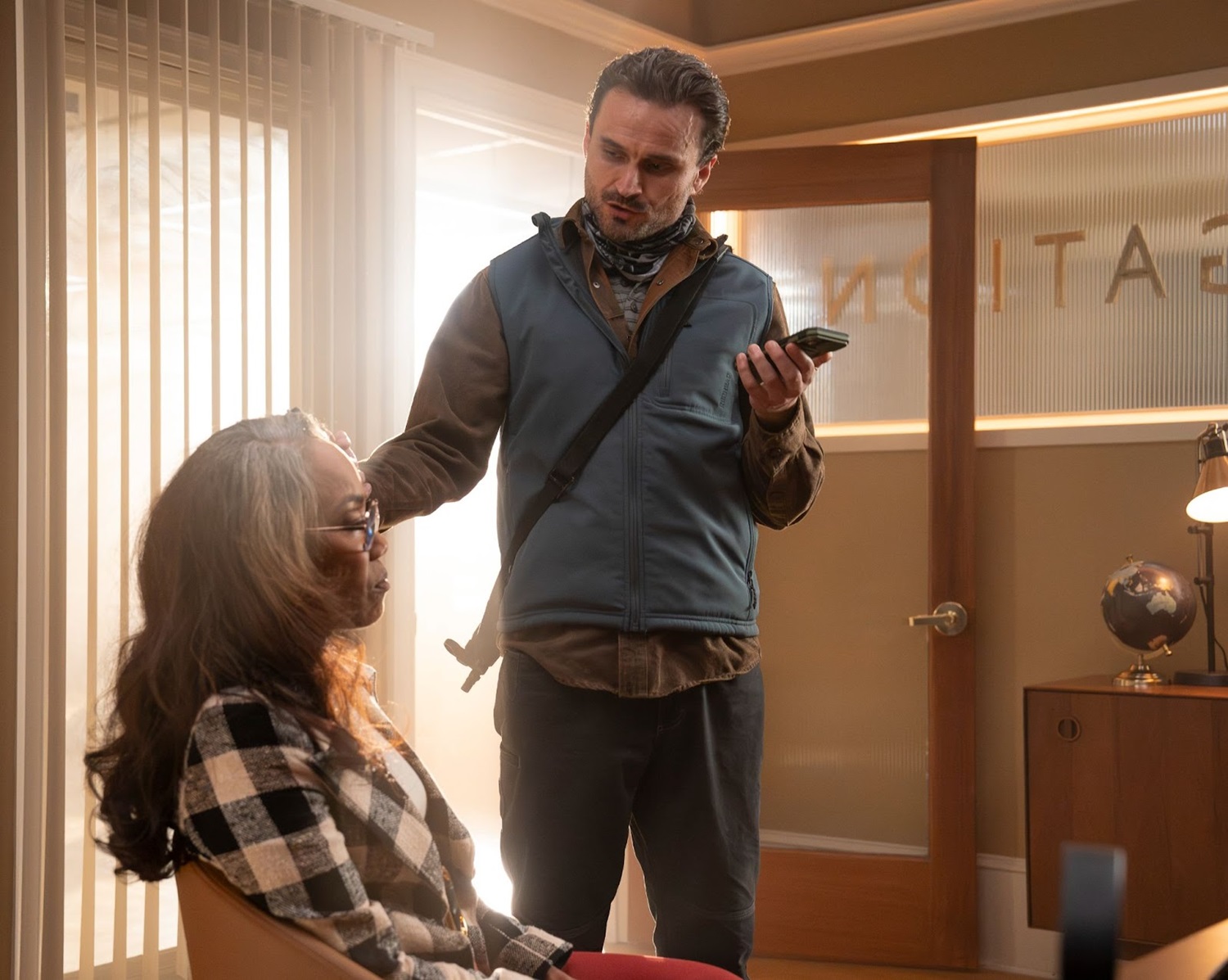 Will Trent (Ramón Rodríguez) stands in the GBI conference room listening to Eduardo, his phone’s AI assistant, help him make sense of the case board, which is full of information about Founder’s Front, the terrorist organization that just unleashed a bioweapon in Atlanta. Faith Mitchell (Iantha Richardson) gets a call from Michael Ormewood (Jake McLaughlin), who is at the hospital, which has just gone into lockdown. Will hears his dog, Betty, barking on the other end of the line and learns that Betty and Nico (Cora Lu Tran) are there. Worse, Nico has symptoms of the virus that has already claimed several lives. Will wants to see a crime scene, and Ormewood tells him about the tent Roy was living in. Caleb Roussard (Yul Vazquez), aka Will’s biological father, offers to drive, and Will accepts the offer. Before leaving, Amanda Wagner (Sonja Sohn) tells Will that she’s worried that Caleb’s sudden entry into his life will make things too complicated. Will promises that he’s fine.