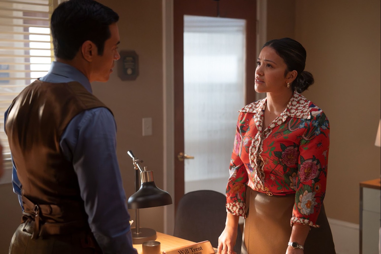 Will sits at his desk, still covered in blood. Angie heard that Will refused an attorney, and she came to try to help him see reason. She tells him she knows how he’s feeling right now, and he’s not thinking about himself, which is why an attorney could help. And it just so happens that Will Trent is dating one who enters on queue. As Marion Alba (Gina Rodriguez) steps in, Angie encourages him to accept her help.