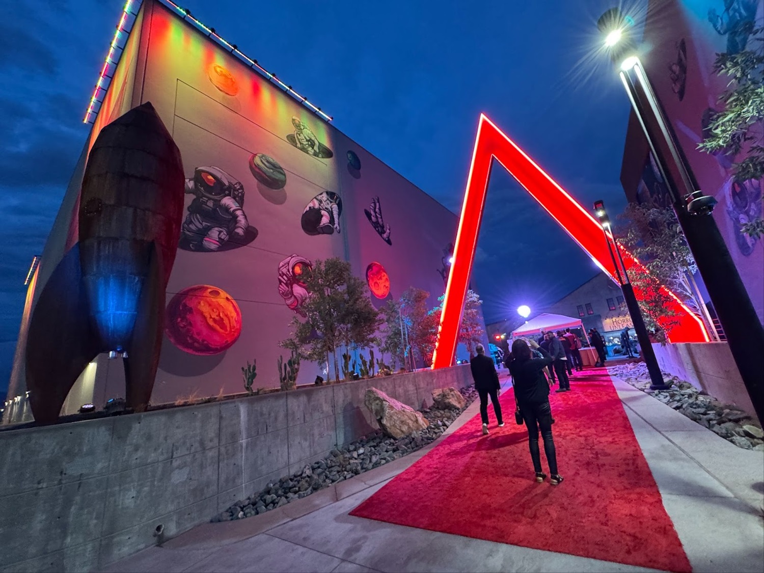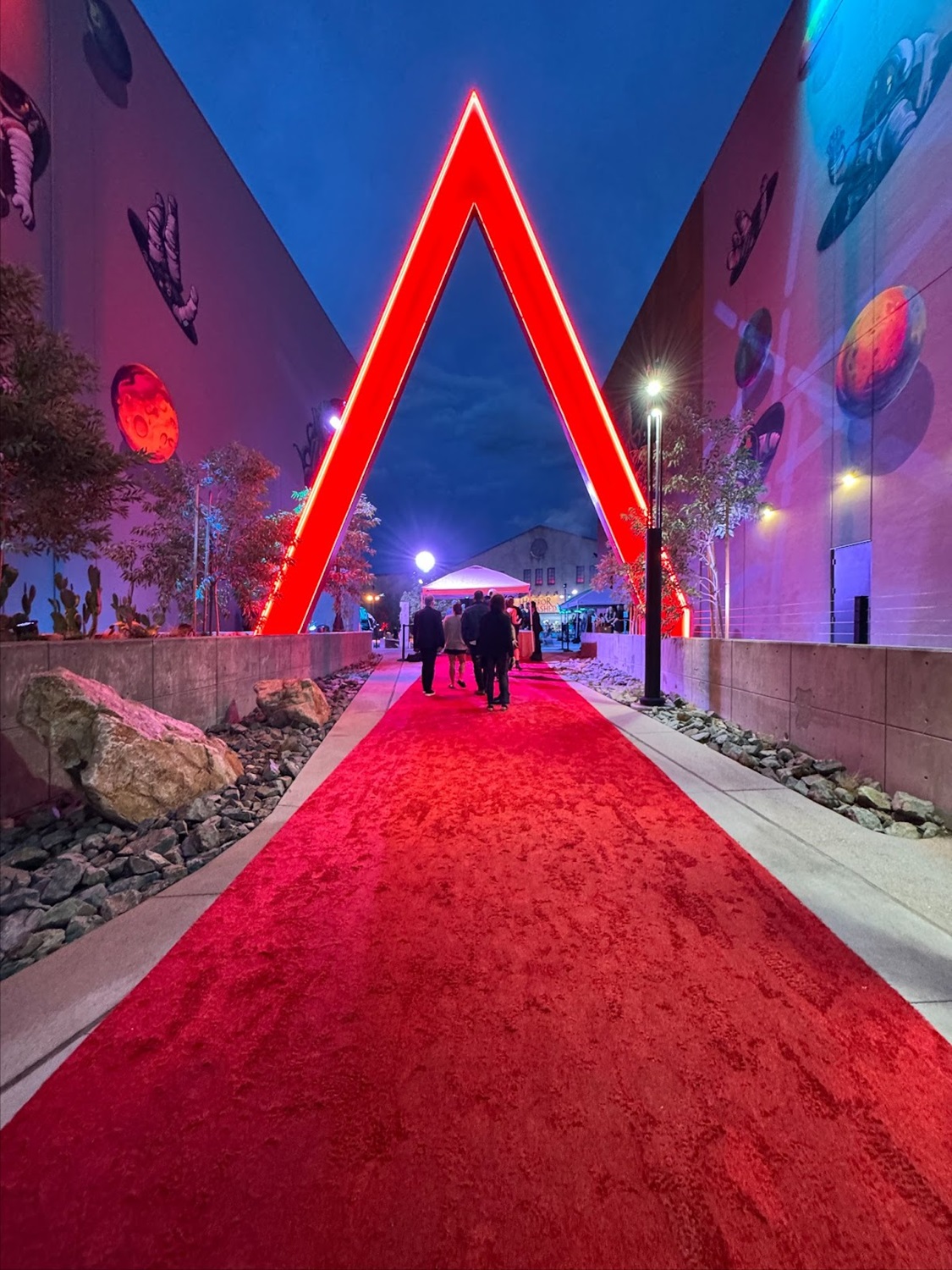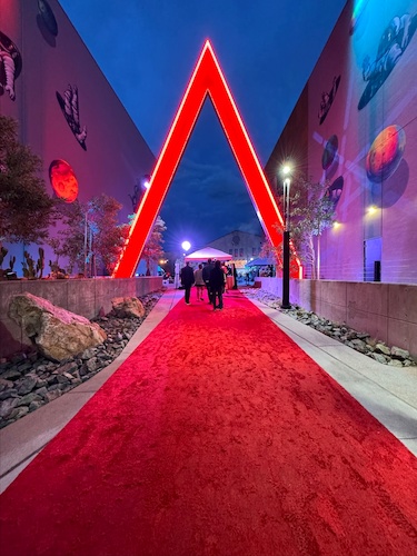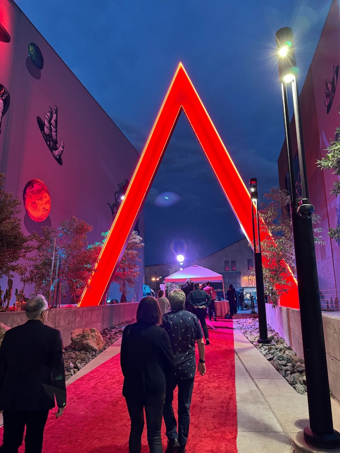 Rewinding time a bit, let’s take a look at some photos from the evening. When I arrived at the venue, I found a red carpet set up in front of a big, neon version of the Area15 logo.