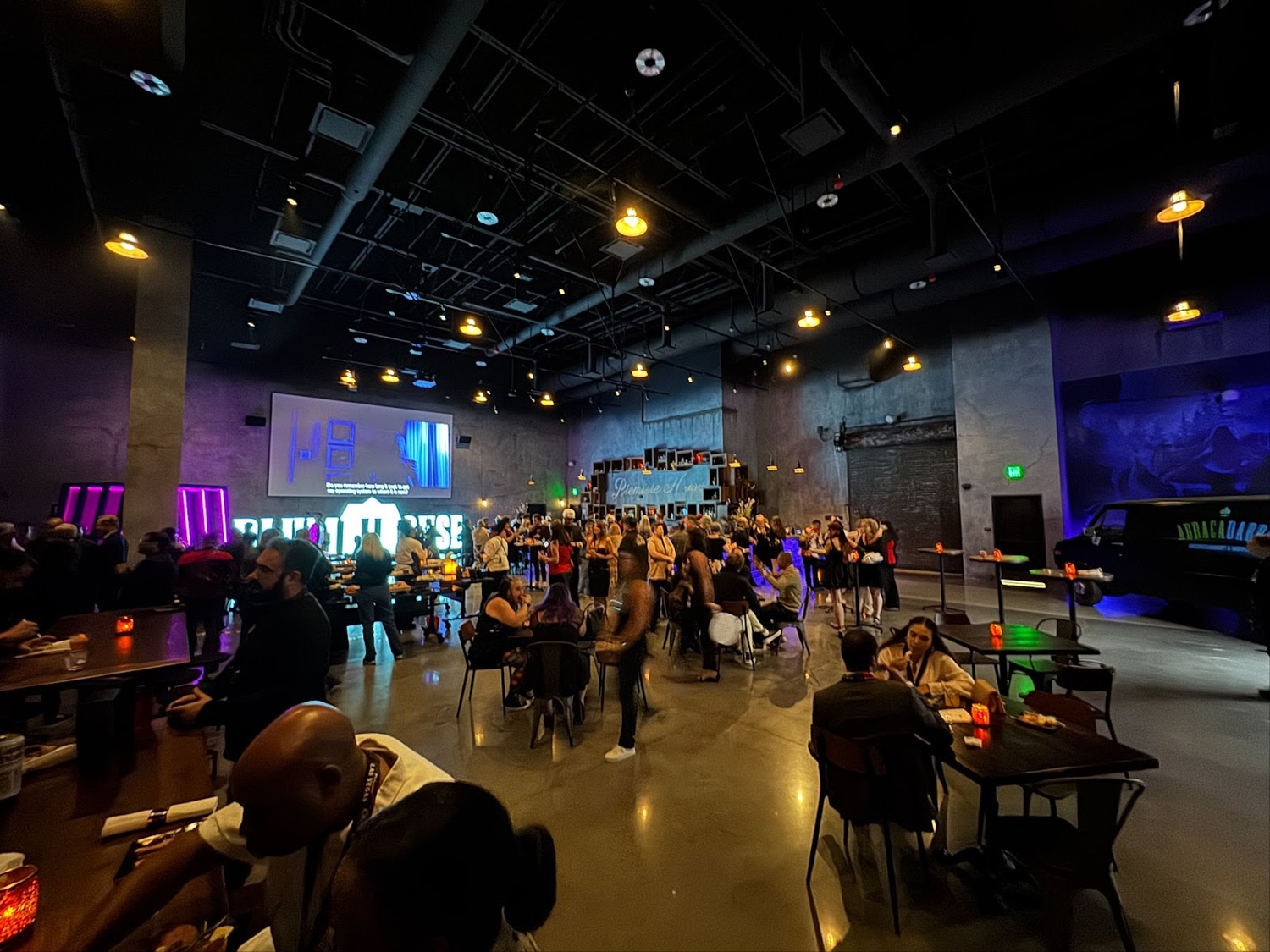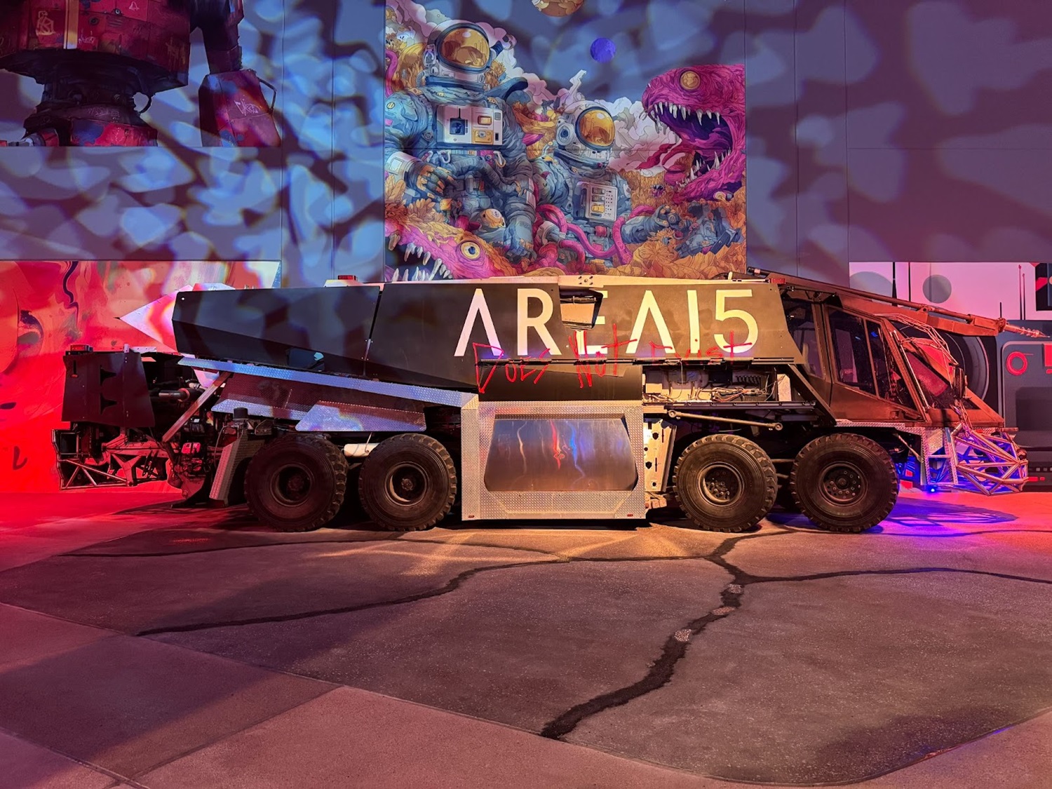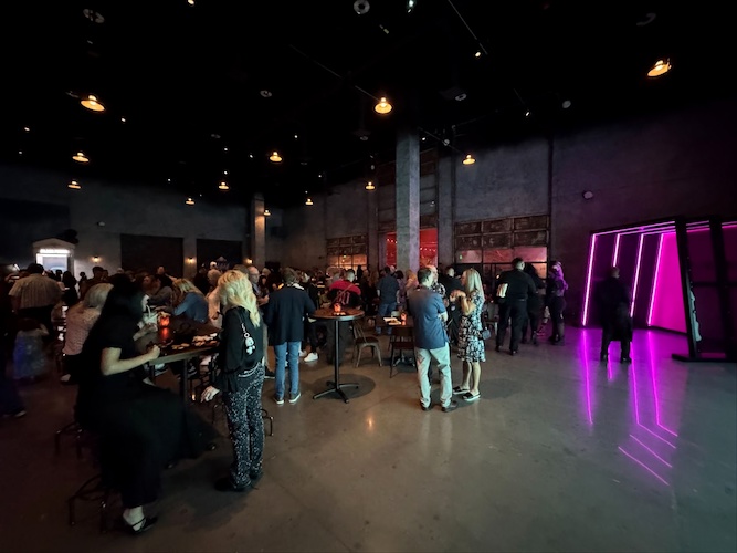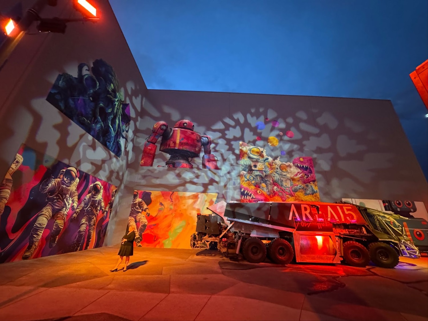 Rewinding time a bit, let’s take a look at some photos from the evening. When I arrived at the venue, I found a red carpet set up in front of a big, neon version of the Area15 logo.