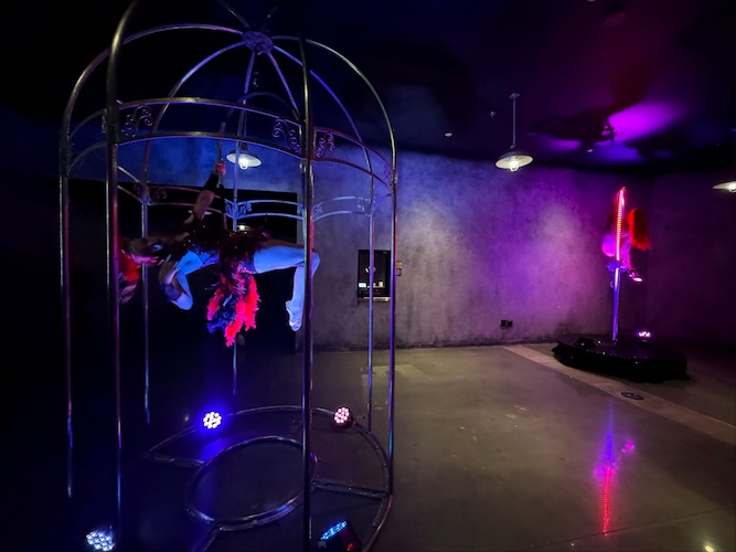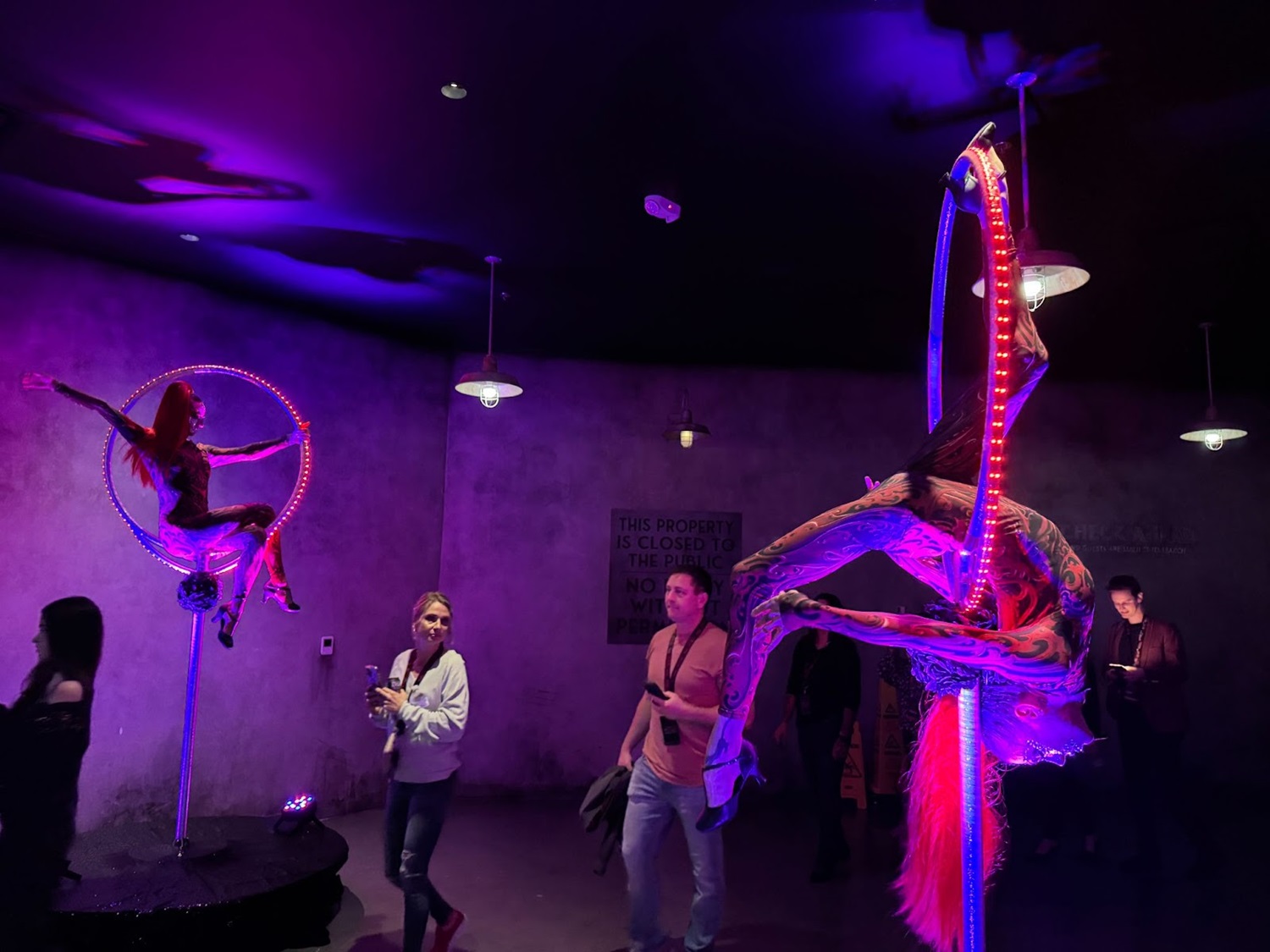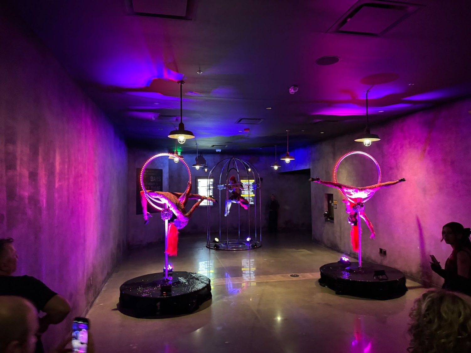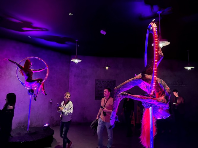 Inside the lobby of Universal Horror Unleashed, some mesmerizing performers were set up in rings.