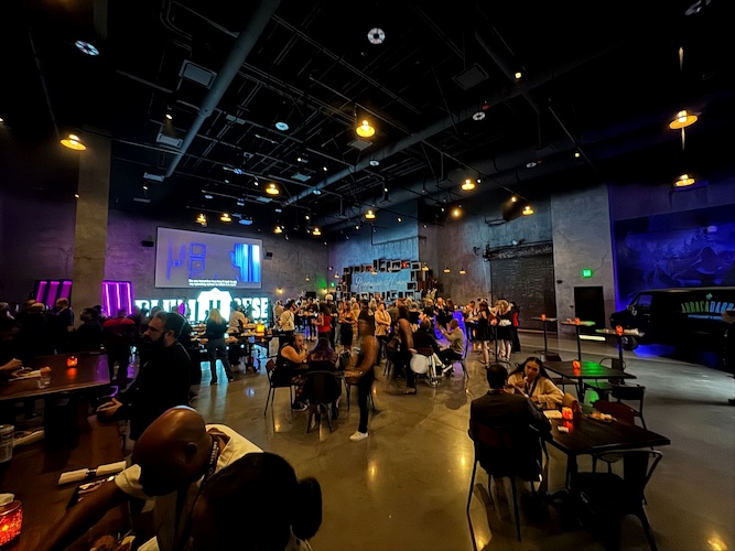 A step-and-repeat area was set up outside the entrance for celebrity interviews, along with other Area15 photo ops and decor.