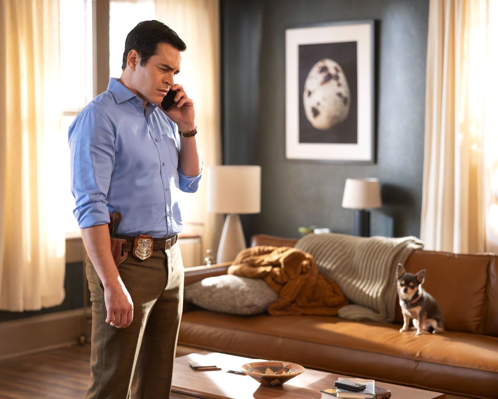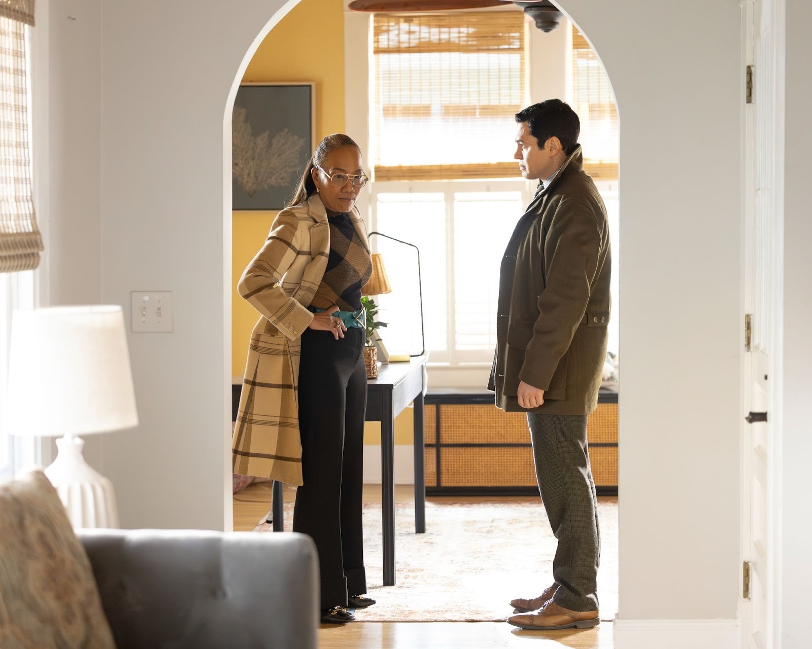 Seymore's lawyer turns out to be Joanne Drexel (Ilfenesh Hadera), someone Ormewood left hanging after a moment between them. She's cool and professional; he's flustered and sheepish. On their way out, Seymore warns Ormewood about "a cranky woman with female troubles" and, mysteriously, elephants. That warning pays off when Angie and Ormewood visit Reba and Hal Adonye (Tabitha Brownstone and Christian Grey Moore) — whose apartment is packed floor to ceiling with elephant figurines. Ormewood knocks one over almost immediately. The couple seems cooperative enough, offering cookies Hal made and saying they don't know anyone who'd want to harm Nikki. Neither recognizes a photo of Seymore. Hal mentions that Nikki had been fighting a lot with her boyfriend, Lester.