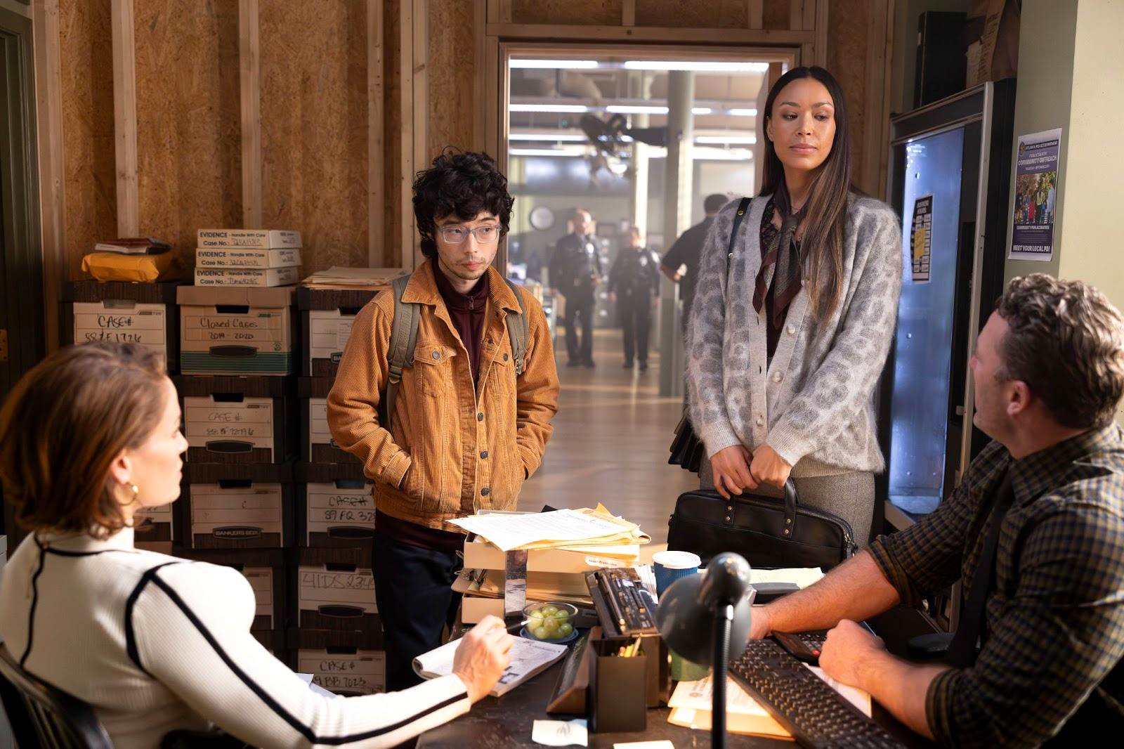 The autopsy reveals Nikki Lane died of strychnine poisoning — and was two months pregnant. When Angie and Ormewood question the boyfriend, Lester Clump (Daniel Salyers) — who arrives with his attorney Barry (Joshua Trevilcock), who is also his brother — he claims he’d been away for six months caring for a relative and that Nikki had spent all her time with a neighbor named Reba and her fiancé. Angie pushes hard, suggesting he knew about the baby. He refuses a DNA test, but tosses a water bottle in the trash on his way out. Angie and Ormewood pick it up. The DNA test rules Lester out as the father.