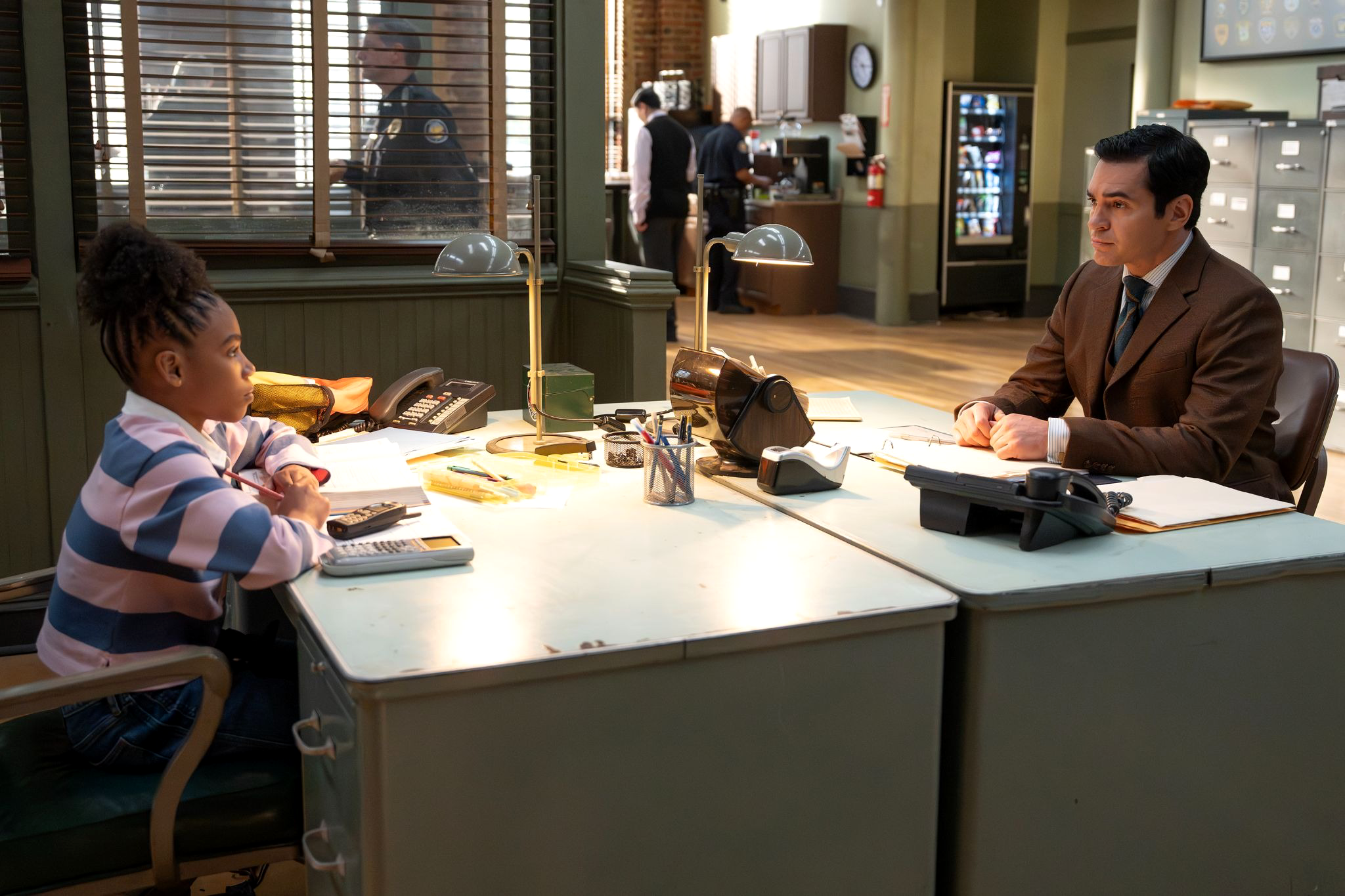 The elevator opens at the APD, which is busy. The hazmat man is gone. Will touches the back of his head. He goes to Angie's desk and tries to use her phone. A young girl (Khloe Reynolds) intervenes — "You're not supposed to use that phone." He sits. She tells him her mom works at that desk. He introduces himself: "I'm Will." She looks back at him: "I'm Faith." Will stares. Something is very wrong. An officer comes for him — and suddenly Will is younger. He's brought by young Sergeant Heller to Captain Amanda Wagner. A younger Amanda (Sydney Park) turns around. Will's face floods with emotion.