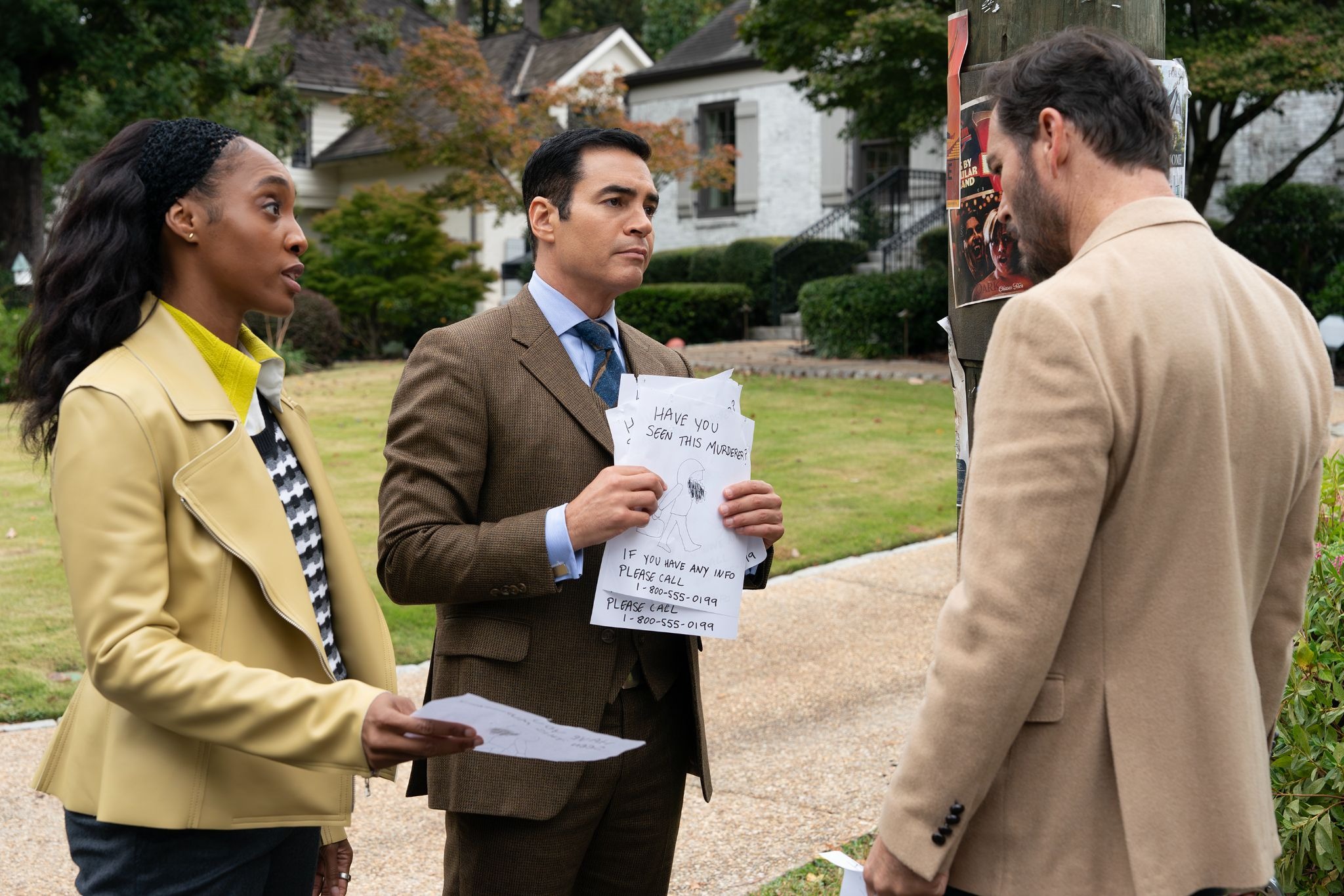 Faith Mitchell (Iantha Richardson) enters and reports there’s no sign of forced entry. They’ve notified Joelle’s husband, Eli Hornbaker (Conrad Whitaker), who was on a business trip in Memphis. Will believes Joelle was the intended target and that the killer knew she would be alone. In the kitchen, he asks crime scene specialist Travis Nash (Alex Morf) if he’s noticed anything — fingerprints, smudges. Travis says it’s clean while inspecting a water cooler. Will thinks the killer wiped the scene down, which makes it strange that they left the murder weapon behind.