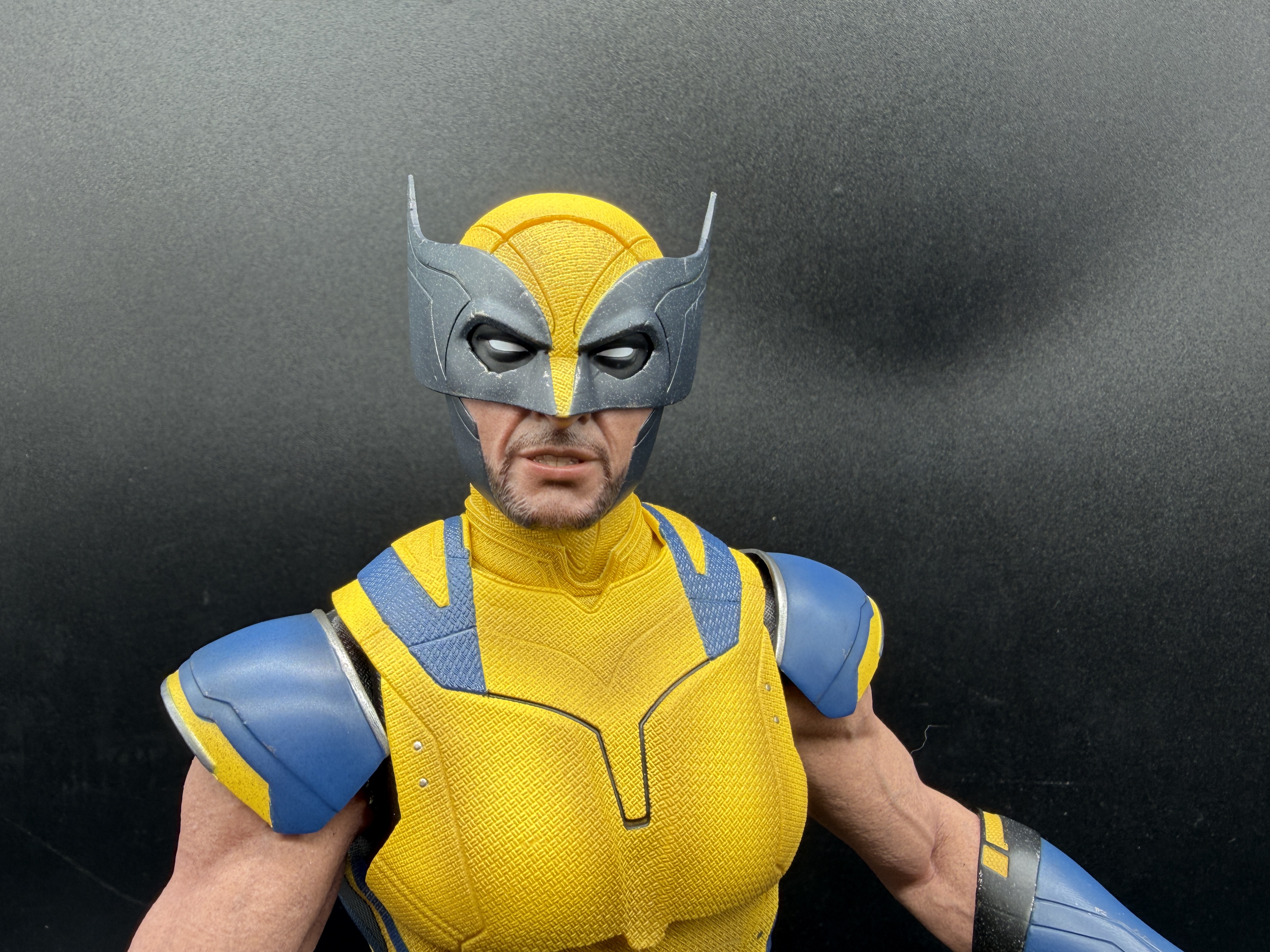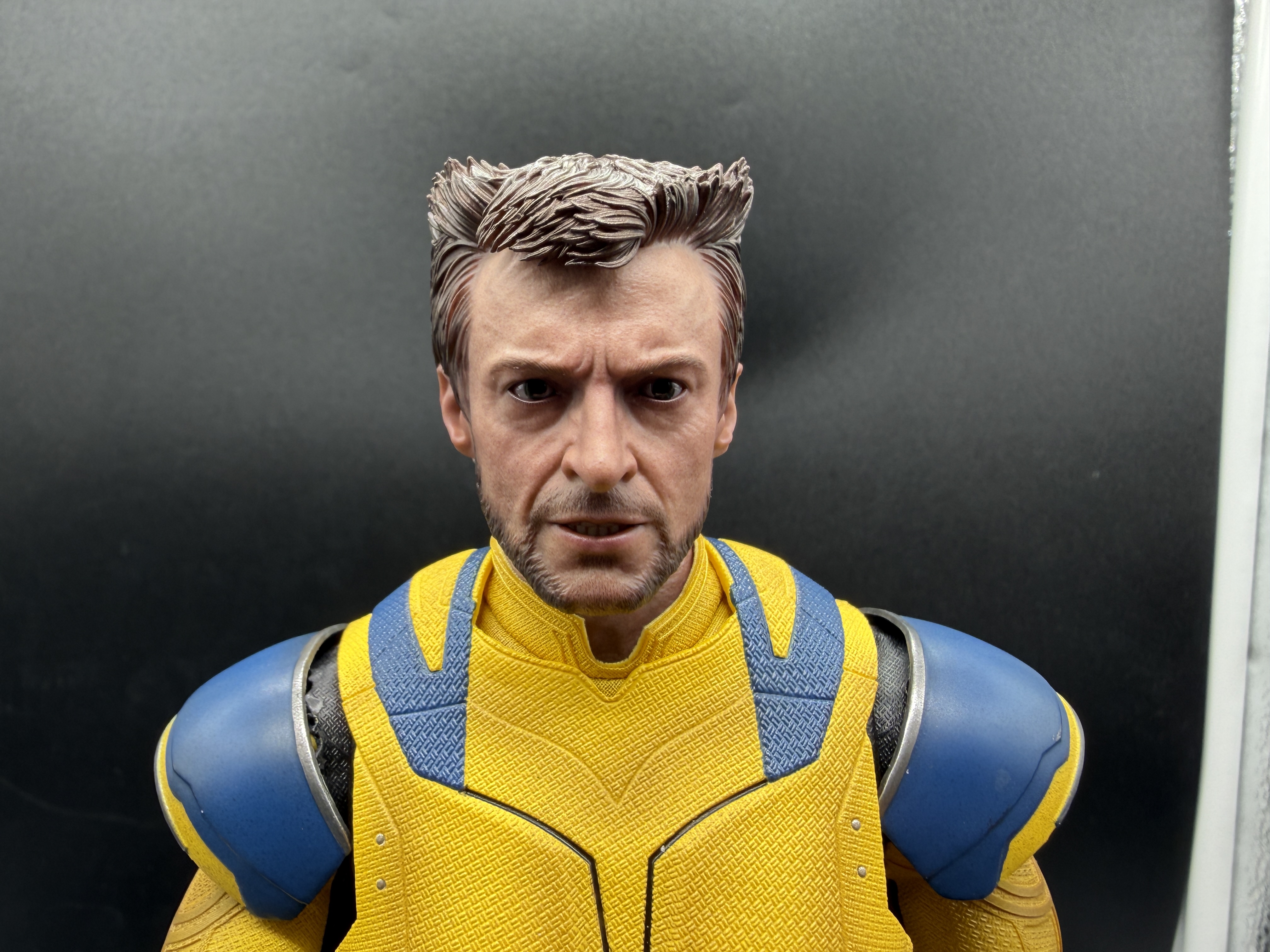 Wolverine alone is iconic. Hugh Jackman's movie version of Wolverine is iconic. But until Deadpool & Wolverine, we'd never seen Jackman dressed in anything resembling the character's comic book costume. So as a lifelong Marvel fan, it still makes an impression that we finally got Jackman in this costume at all, much less that there's such a lifelike sixth scale version of it on my shelf.