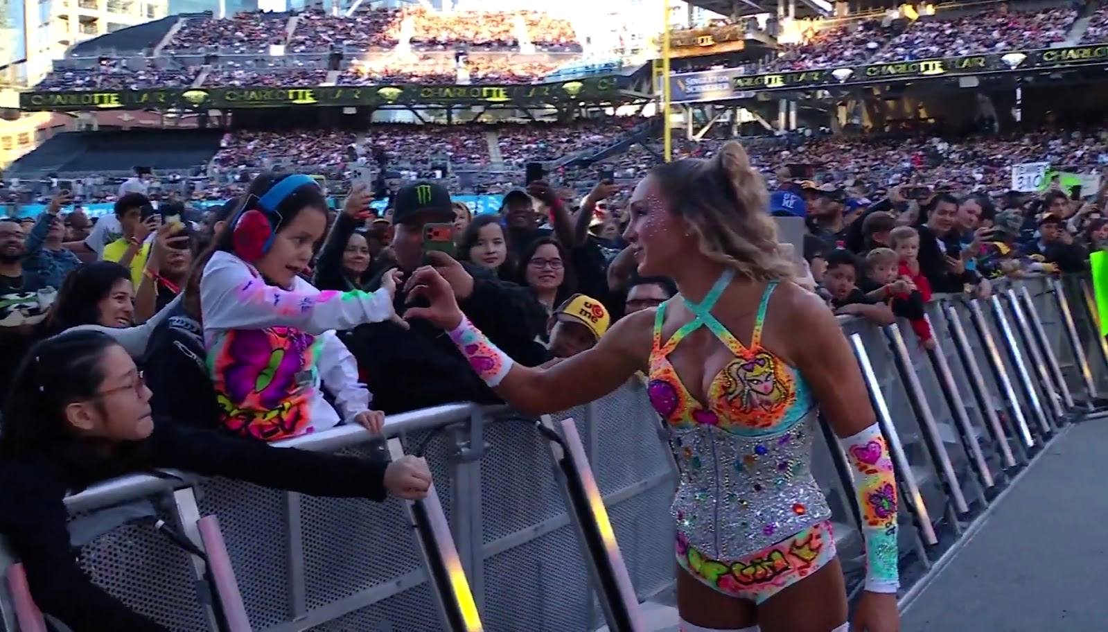 The card promised spectacle, but the moment that set the tone for the night came before the first bell even rang. Charlotte Flair walked out wearing gear designed by Scarlett, a seven-year-old fighting cancer, and suddenly the roar of Petco Park took on a different texture. All of the lights, pyro, and choreography that define WWE showmanship were overshadowed by the unmistakable heartbeat beneath it.