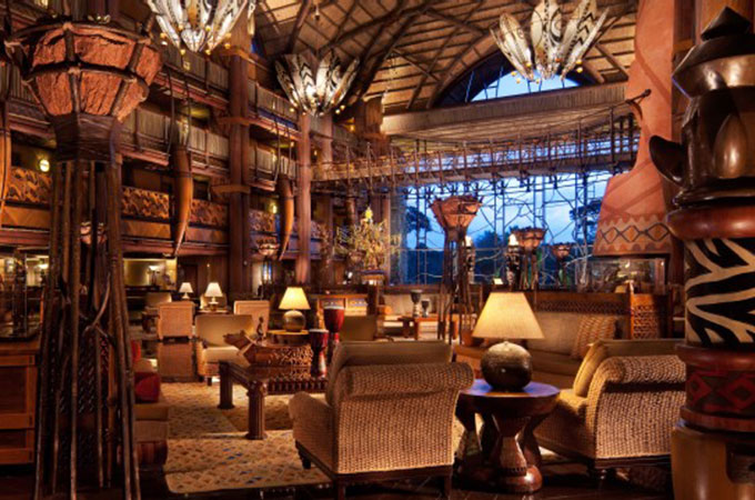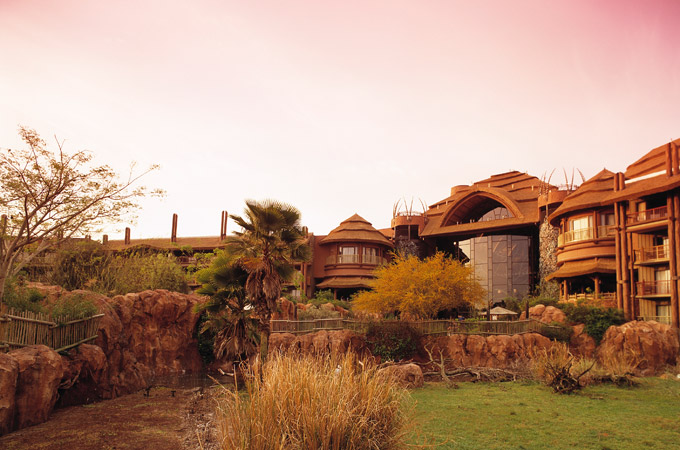 The 6-story Animal Kingdom Lodge was designed by Peter Dominick (who also designed the Wilderness Lodge) and is meant to evoke an African wildlife reserve lodge on the savanna. Animal Kingdom Lodge is divided into two main areas: Jambo House, which is the main guest resort area, and Kidani Village, the Disney Vacation Club villas. An incredible mix of nature and architecture, Animal Kingdom Lodge is one of the most unique and authentically themed properties at the Walt Disney World Resort.