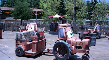 Ride into the world of Radiator Springs for a Jamboree with Mater, a dance with Luigi and his family, and of course a full-blown race to the finish. Visit the Cozy Cone Motel for tasty snacks or grab a hearty sandwich at Flo's; gear up for the road with souvenirs from Sarges's Surplus Hut, and be sure to get your picture taken on Route 66! During Halloween, the entire area is decorated for "Hally Haul-O-Week from Cars Land" and during the holidays it's "Season's Speedings from Cars Land". For both seasons, two of the attractions have slightly updated versions.