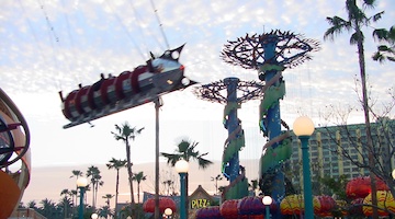 Pixar Pier Four fun neighborhoods celebrate the best of Pixar with incredible rides, carnival games, meet and greets, and of course Bing Bong's sweets!AttractionsGames of the Boardwalk★★★☆☆Golden Zephyr★★★☆☆Goofy's Sky School★★★★☆Incredicoaster ★★★★★Inside Out Emotional Whirlwind★★☆☆☆Jessie's Critter Carousel ★★★☆☆Jumpin' Jellyfish★★★☆☆Pixar Pal-A-Round★★★★☆Silly Symphony Swings★★★★☆The Little Mermaid ~ Ariel's Undersea Adventure★★★★☆Toy Story Midway Mania!★★★★★Pictures of Pixar PierPixar Pier EntranceVideos of Pixar Pier