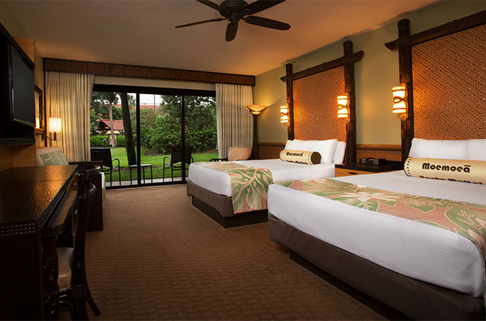 478 Guest Rooms All rooms non-smoking All buildings offer elevators and stairs with interior corridorsResort Features: The Polynesian Village Resort is a tropical paradise that features two pools and two Restaurants, including Ohana, a world-class Restaurants overlooking Seven Seas Lagoon. Standard room amenities: Alarm clock with MP3 player, balcony or patio, mini fridge, ceiling fan, coffee maker & setup, hair dryer, ice bucket, in-room safe, iron and ironing board, pool towels, table & chairs, tea setup, telephone with no surcharge (charges for long-distance will apply), television, USA Today Delivery (Mon-Fri), vanity area, voice mail, Wi-Fi wireless internet