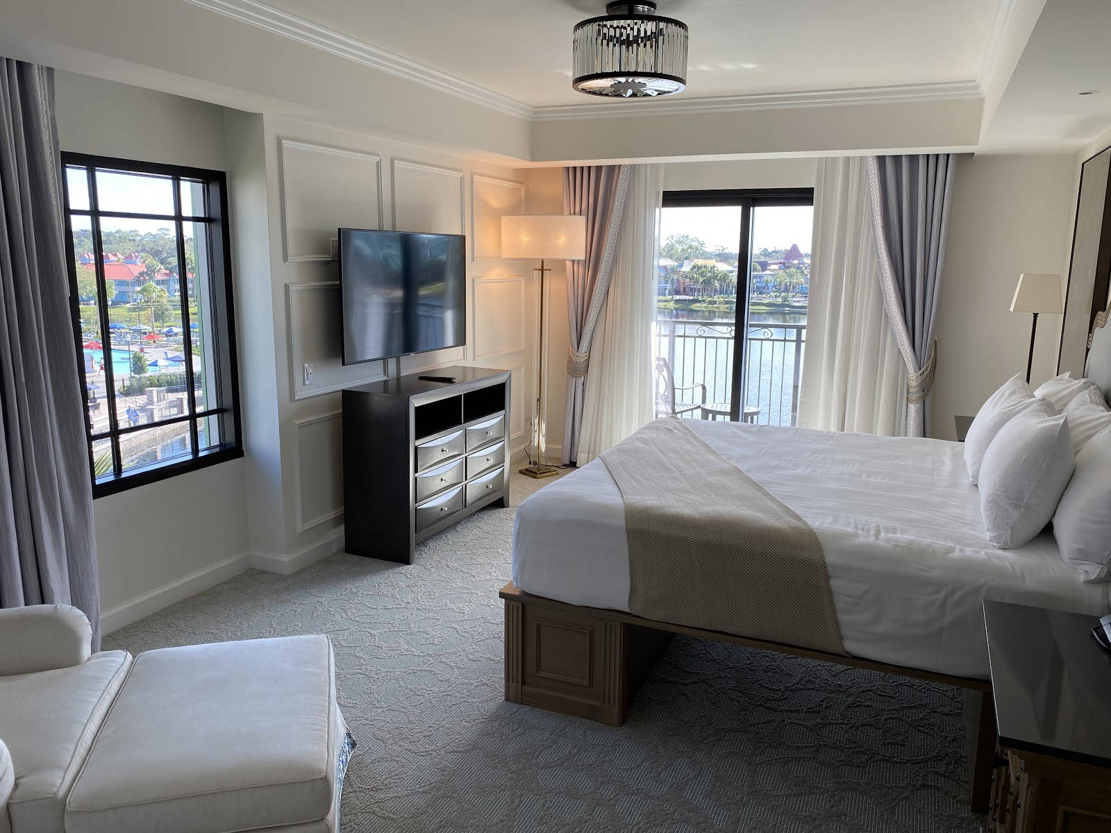 Resort Features: Guests of the Riviera Resort have direct access to Dinsey's newest transportation—the Disney Skyliner! The resort is home to the elegant rooftop restaurant Topolino's Terrace whose name comes from Mickey Mouse's Italian title. Guests will enjoy beautiful 360° views of the resort from this signature dining location that offers character breakfasts and exquisite dinners.   Standard room amenities: Private porch or balcony Coffee maker, Iron and ironing board, Flat-panel TV(s), Microwave, Wi-Fi wireless internet, Hairdryer (except tower studios), Villas feature, Full kitchen, Stacked washer and dryer