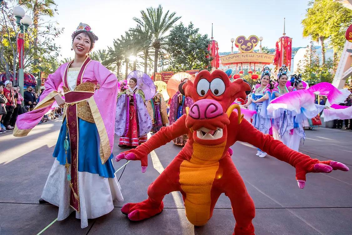- Mulan’s Lunar New Year Procession is returning this year, with a gorgeous new float for Mulan and Mushu to arrive upon, accompanied by traditional Chinese drummers performing powerful rhythms. Decorated in red and gold to symbolize good fortune and happiness, the float features bright bunches of red firecrackers that hang together with golden tassels, and delicate red and gold lanterns come aglow for after-sunset performances. During the procession, Mulan and Mushu are surrounded by performers bringing cultural artistry and dance to life.