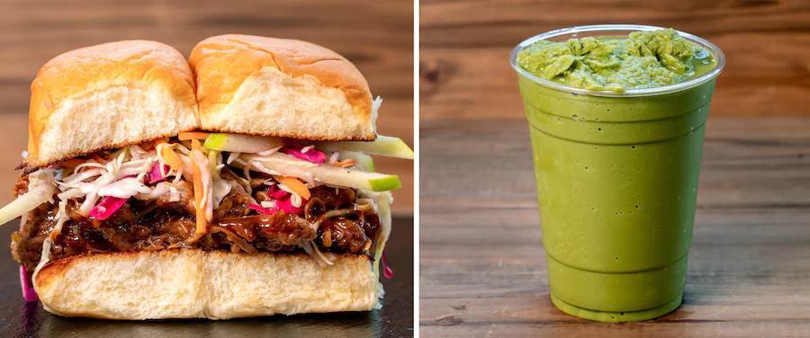 - Hoisin Pork Sliders: Marinated pulled pork on Hawaiian rolls with apple slaw (New)