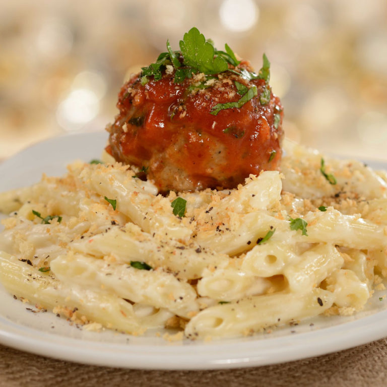 - Three-Cheese Pasta with a Meatball — Creamy three-cheese sauce and a spicy lamb and beef meatball inspired by the Resistance Movement