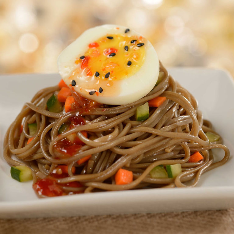- Vegetarian Soba Noodle Salad — chili-soy Soba noodles, cucumbers and carrots topped with a hard-boiled, chili-glazed deviled egg inspired by the Ewoks and Endor