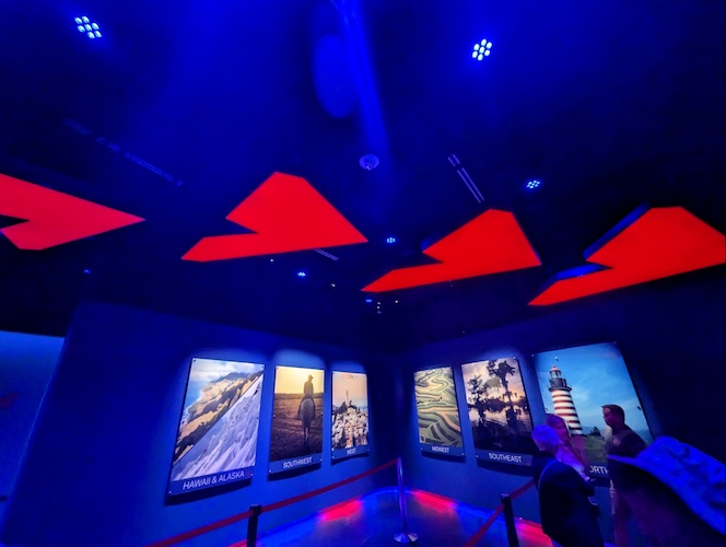 Unlike Soarin’, the attraction does not load on the ground floor. Similar to Flight of Passage, guests are sorted into different levels. Each tier has its own hallway, where you walk down to your vehicle. Instead of loading in the theatre, you buckle up in a small room similar to the Pandora E-Ticket. When the adventure begins, each individual row rotates into the theatre. Quickly, the ride brings you on an epic tour of the United States.