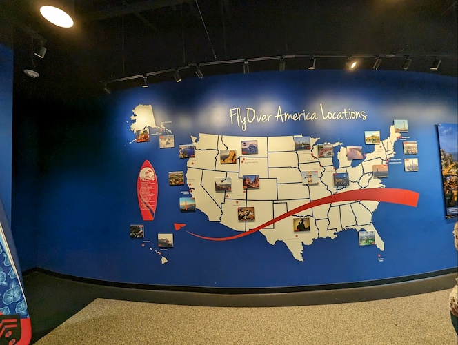 Similar to Soarin’, FlyOver America also utilized pre-shows as guests waited to board their flight. With a significant lack of campy, family humor, FlyOver takes inspiration from a more serious aviation atmosphere. Think EPCOT’s version of the attraction without Chief Flight Attendant Patrick. Admittedly, I remember the waiting and pre-show experience to really drag, which made me worried the experience would lack the wonder and charm of Soarin’, especially with the ticket pricing being a little steep.