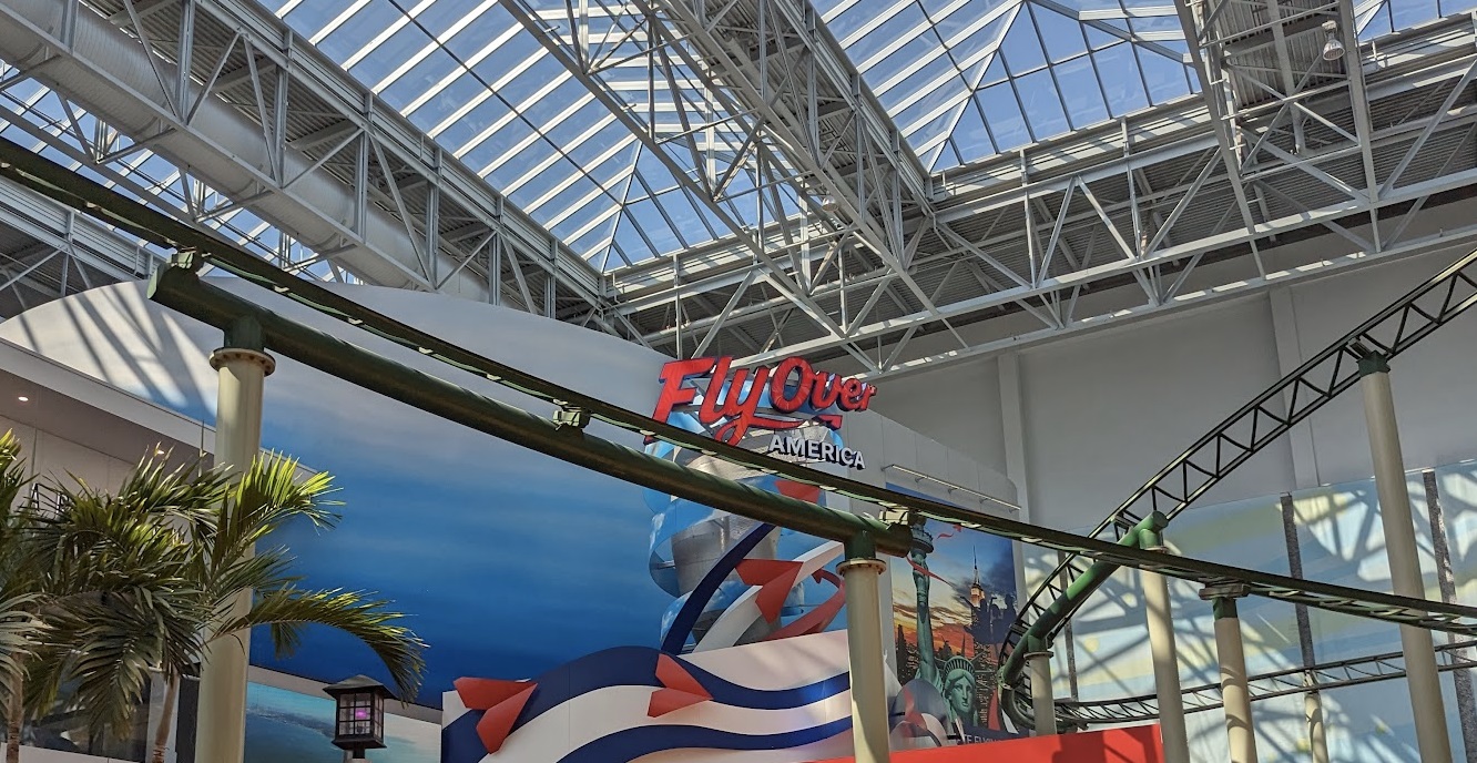 Constructed inside the mall’s Nickelodeon Universe theme park, FlyOver America opened in 2016 inviting shoppers on a hanggliding adventure across the USA. As we head towards the Summer 2026 debut of Soarin’ Across America, let’s take a look at the first flying theater attraction across the nation.