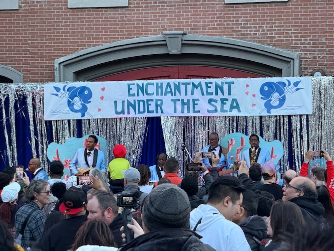 In addition to Marty and Doc Brown, many other iconic elements of the film are recreated here – from the Enchantment Under the Sea dance, to a recreation of the Clock Tower lightning strike that sends Marty back to the future, and even George McFly asking Lorraine to the dance.